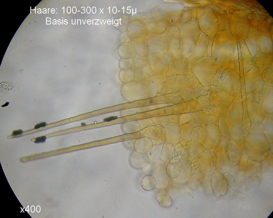 dem deutlichen, glasigen Apothezienrand und den septierten Haaren ohne verzweigter Basis
