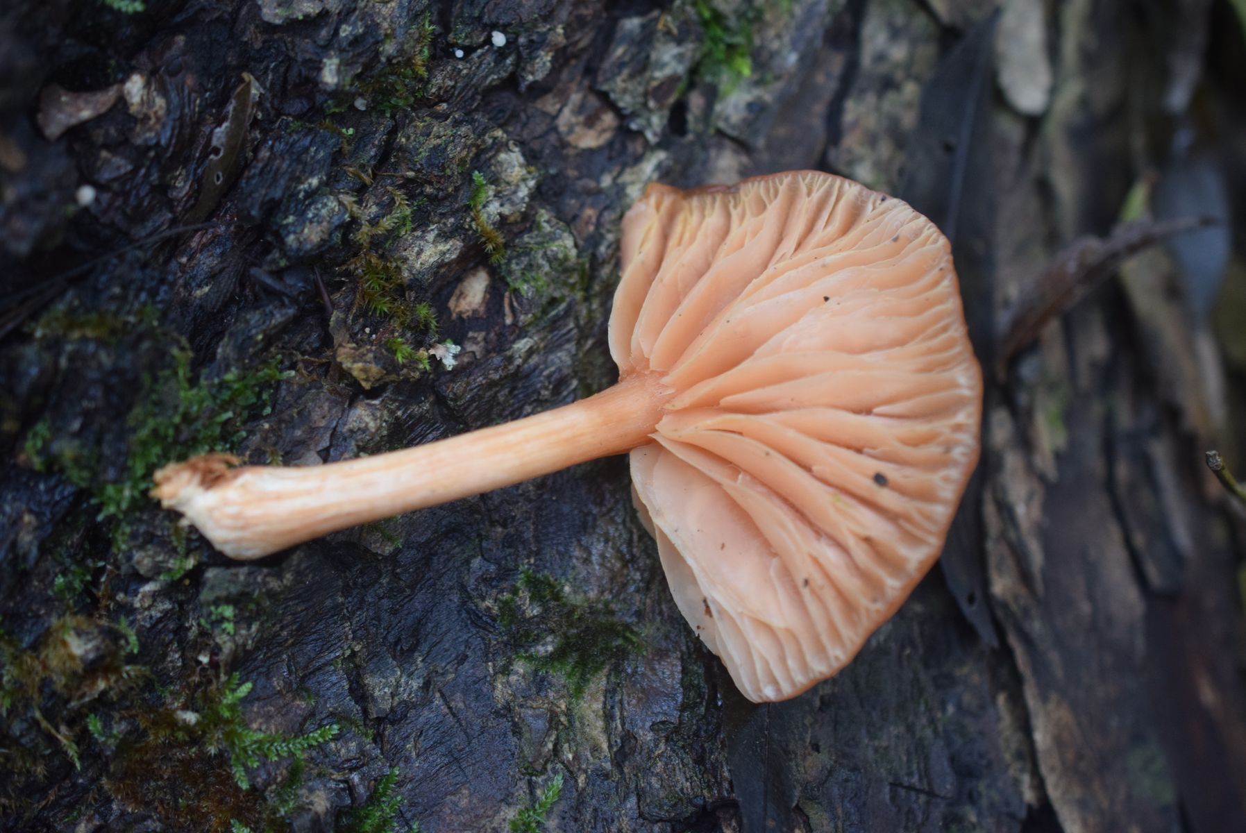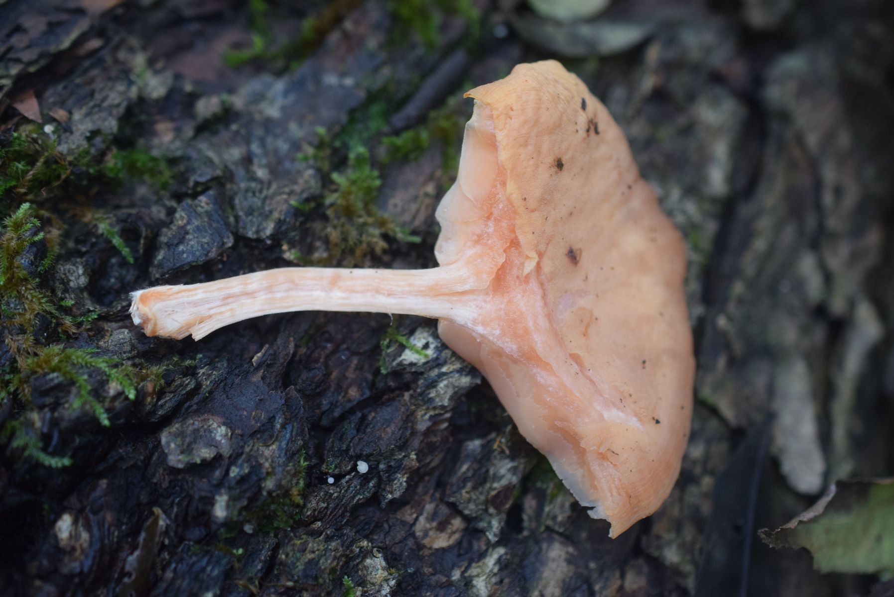 Lamellenpilz , Gefunden gestern , Kroatien Landinnen - Laubwald ( nur Laubbäume ) 90 m ü NHN , Substrat tote an Boden liegende unbekannte na ja nicht so lang geschnittene Baumstamm - Geruch unbedeutend , Geschmack neutral , Fleisch gallertartig Kommisch .