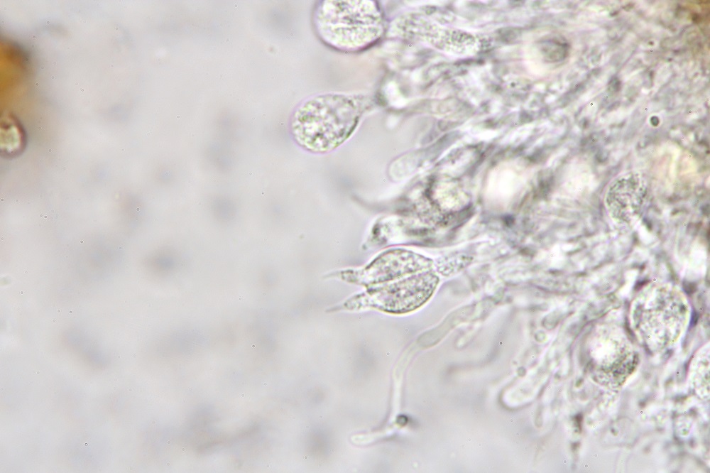 Später konnte ich auf dem Belag Zähnchen finden, die zu einem Heterobasidiomycet gehören.