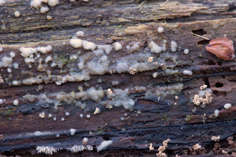 So hat sich dann herausgestellt, dass ich die Haupt- und Nebenfruchtform der Protodontia subgelatinosa (Syn: Stypella subgelatinosa) gefunden habe.