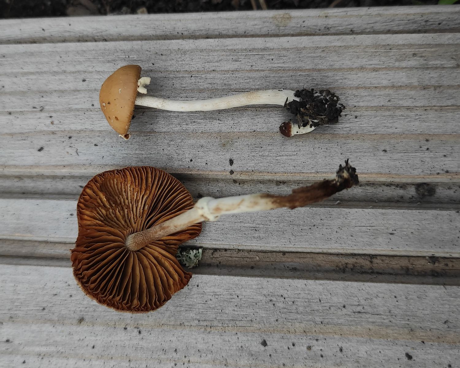 Ich hatte – nach allen meinen anderweitigen Abgleichungen, Untersuchungen (u.a. auch Sporenpulver) – dann mich auf Conocybe rugosa Syn. Pholiotina rugosa, Pholiotina filaris, Conocybe filaris, Pholiota rugosa festgelegt und was ich von Deinen Ausführungen hier bislang sehe, halte ich Deinen Fund auch für FK dieser Art.