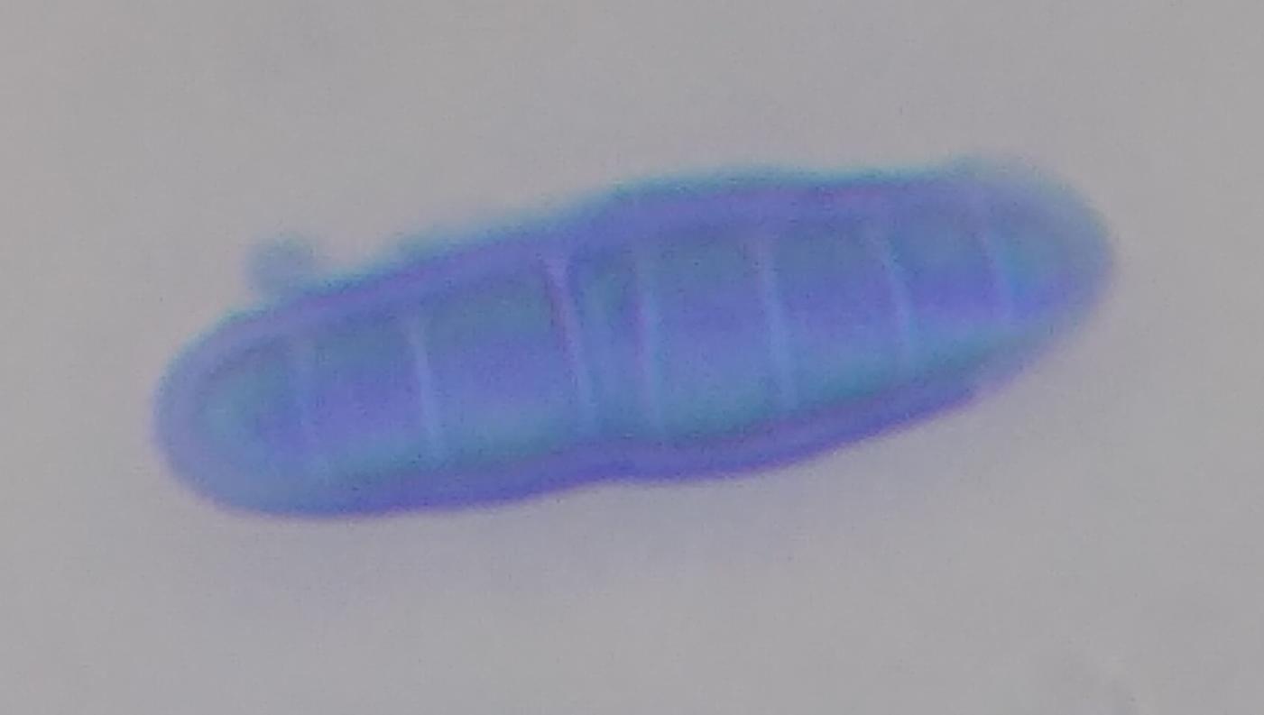 Bilder 6 Sporen in BWB gefärbt, 6-8 zellig mit dicker (Schleim)Hülle