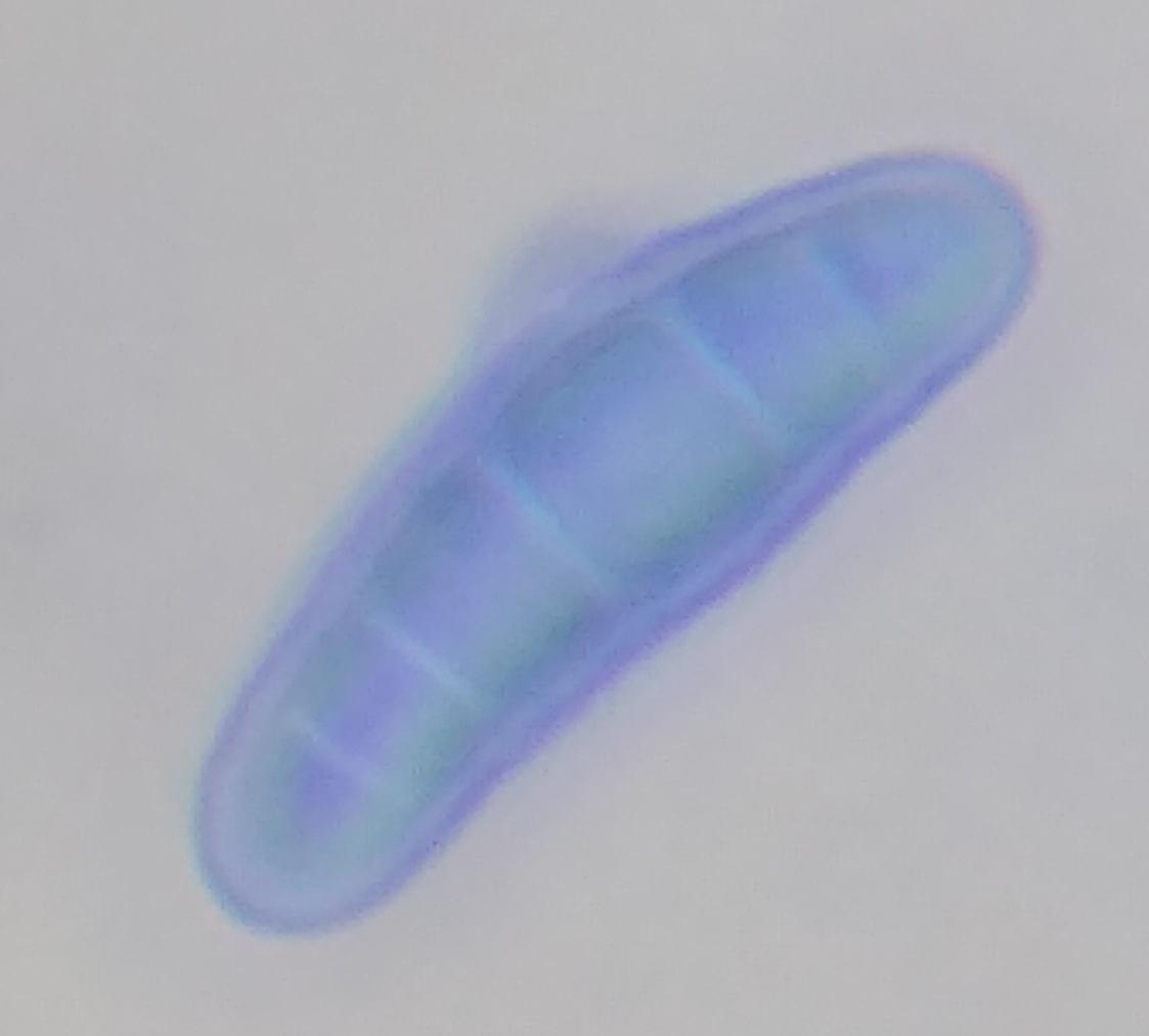 - Sporengröße 20-37 x 5-9, gerundete Endzellen, vergrößerte Mittelzelle(n)
