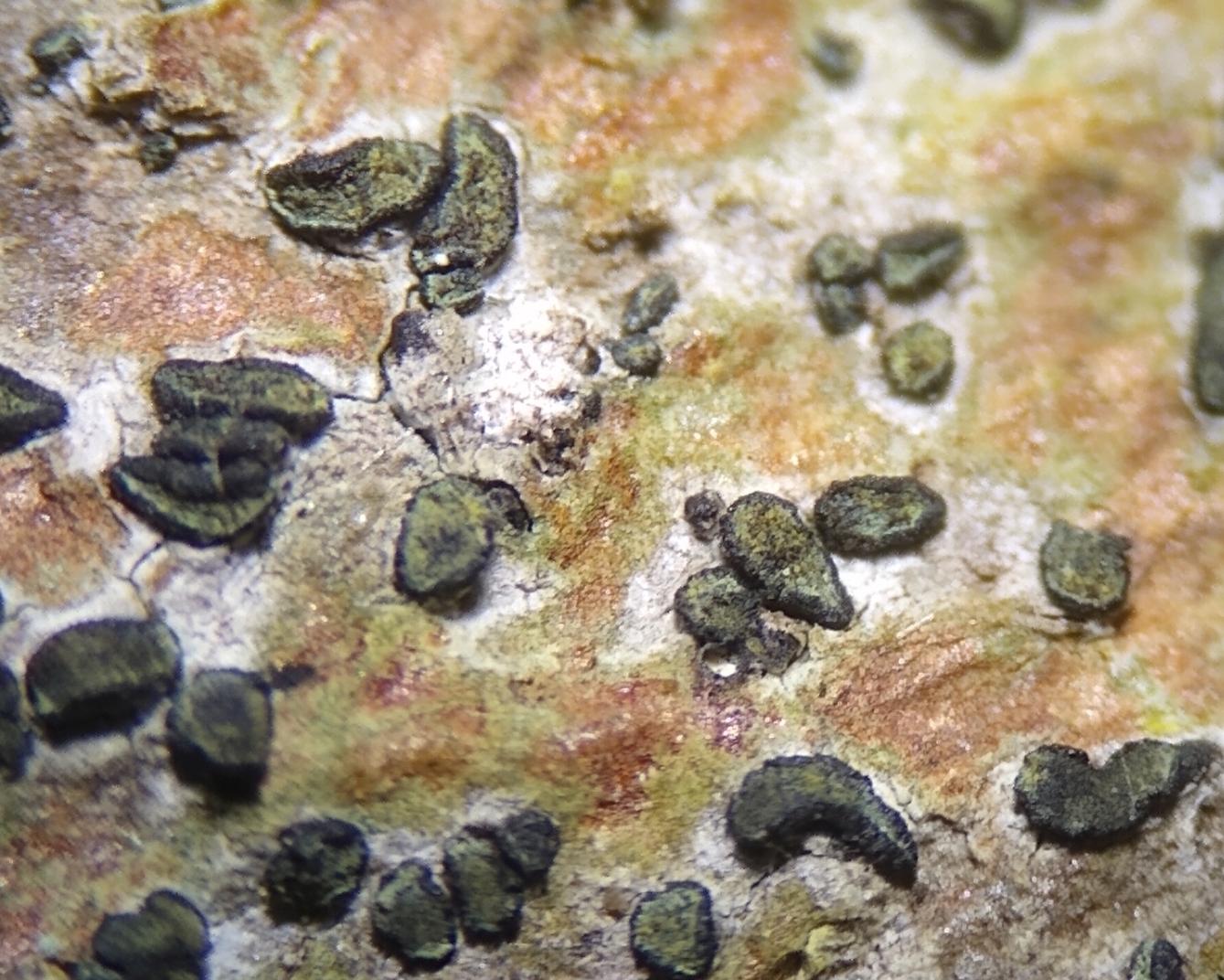 Ein Teil der Apothecien wirkt grünlich bereift - ob das ausgebüxte Algen sind, kann ich nicht ausschließen.
