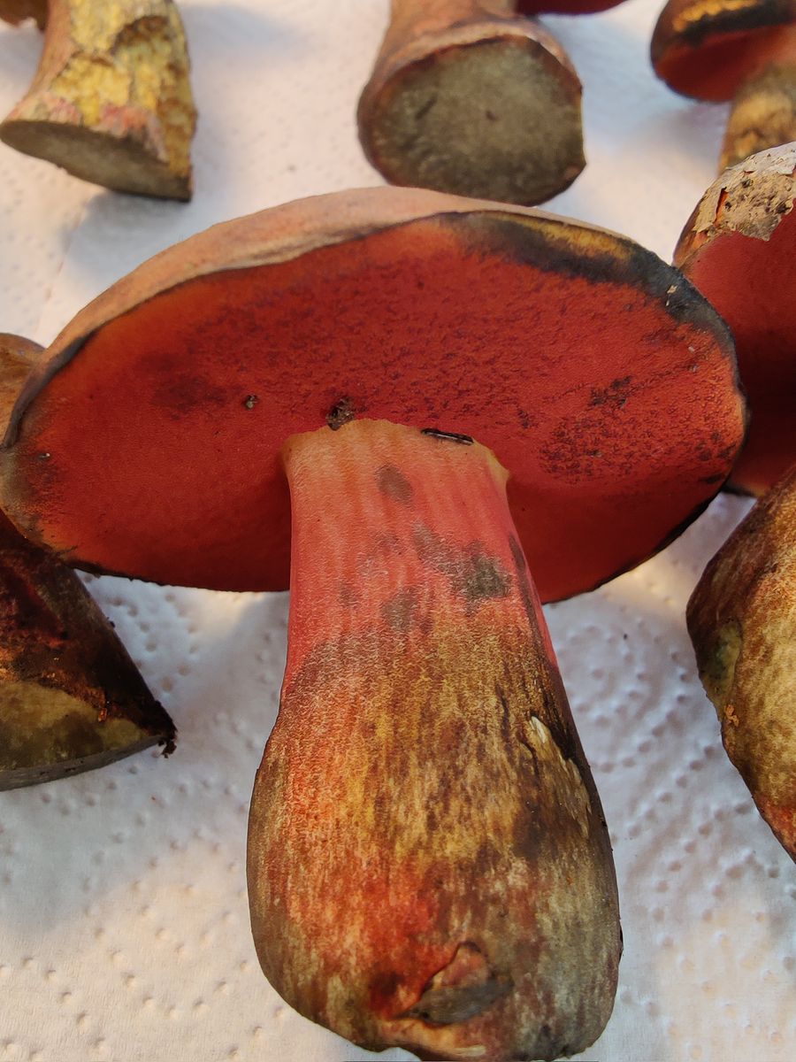 Bei den flockenstieliger Hexenröhrlingen, ist mit flockenstielig diese roten Maserung gemeint?