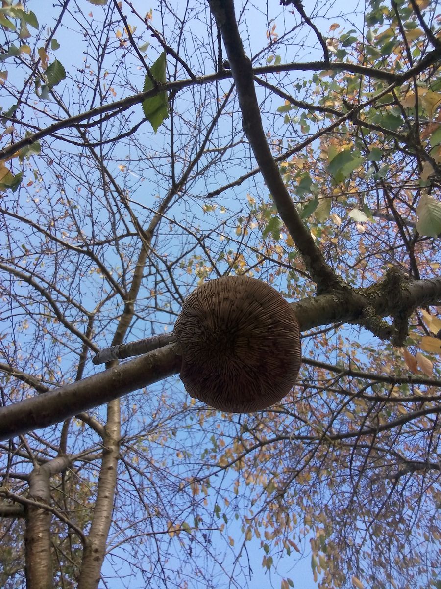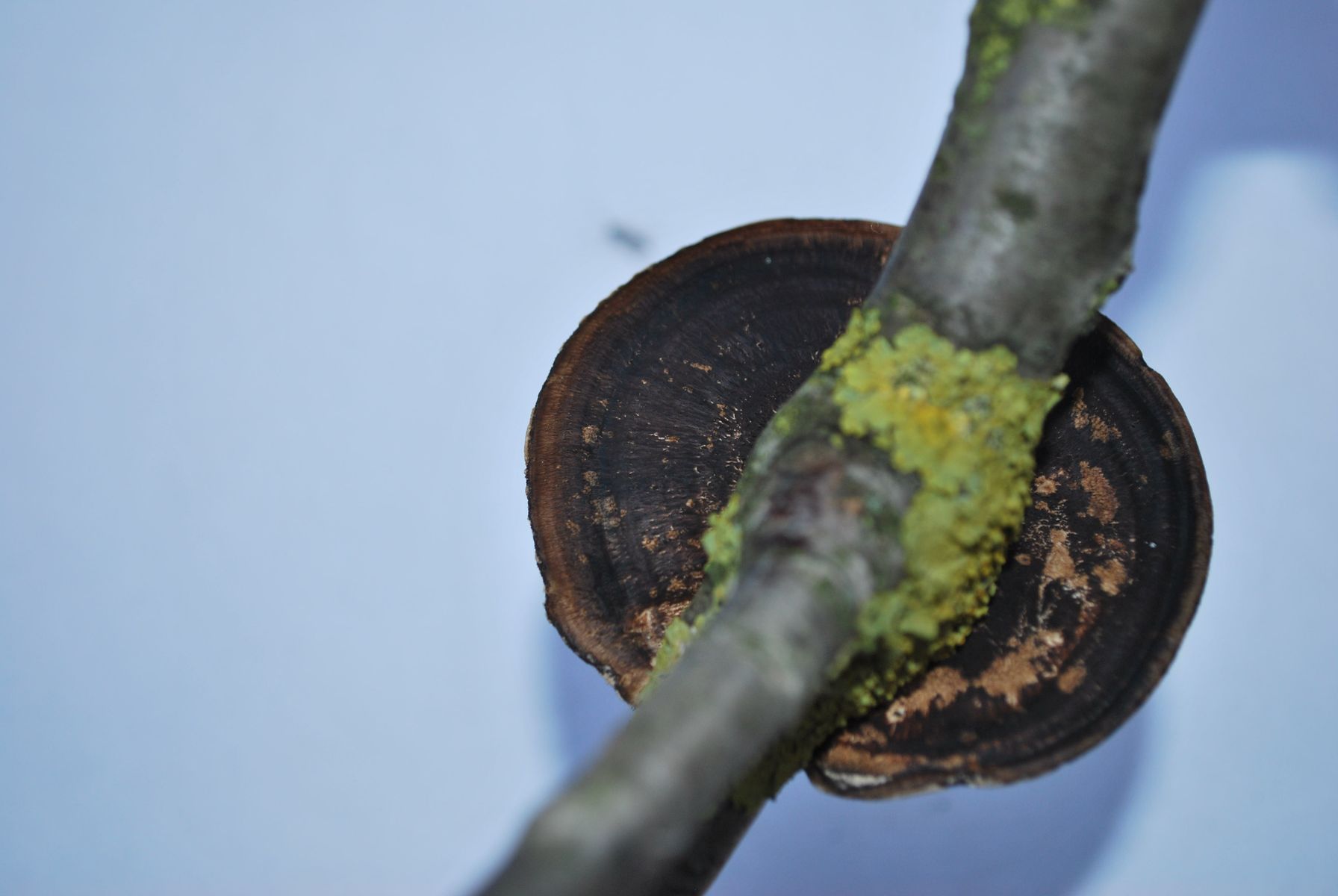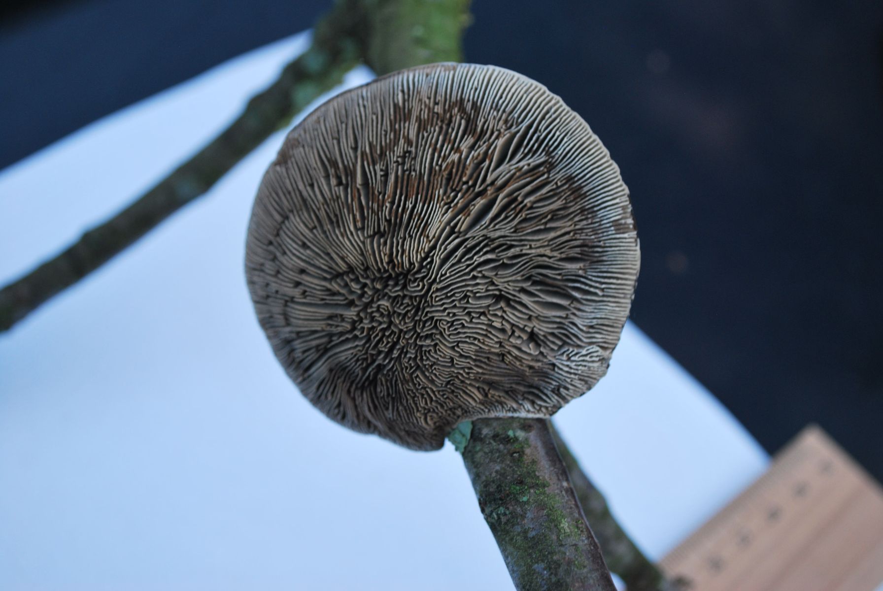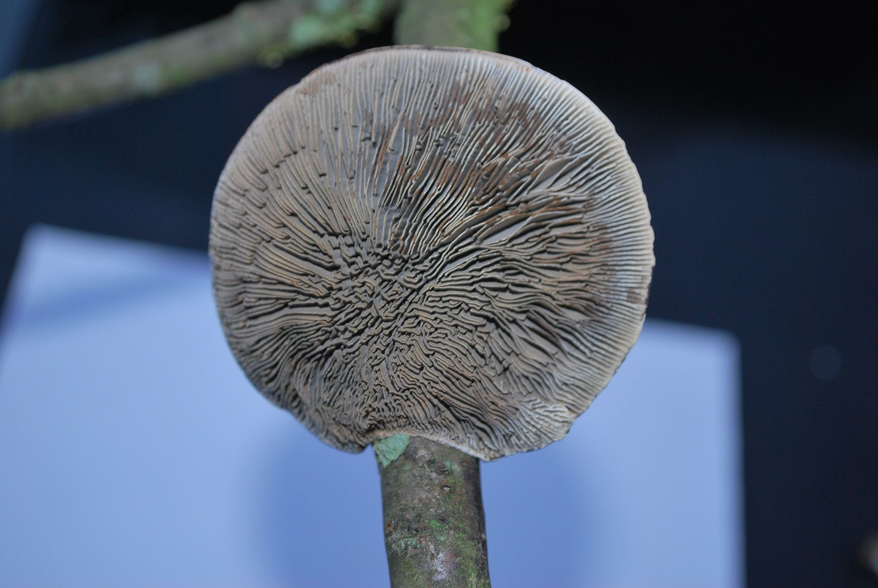 diesen FK fand ich heute an einem faktisch abgestorbenen Ast eines Vogelkirsche-Gehölzes (Prunus avium) auf einer Wiese neben Äckern (er brach noch ab) und ich halte ihn aufgrund der Merkmale für Gloeophyllum separium (Wulfen: Fr.) P. Karst. Ich dachte aber, diese Art kommt nur auf Nadelhölzern vor und dieses Gehölz war eindeutig eine Vogel-Kirsche, mithin ein Rosengewächs.