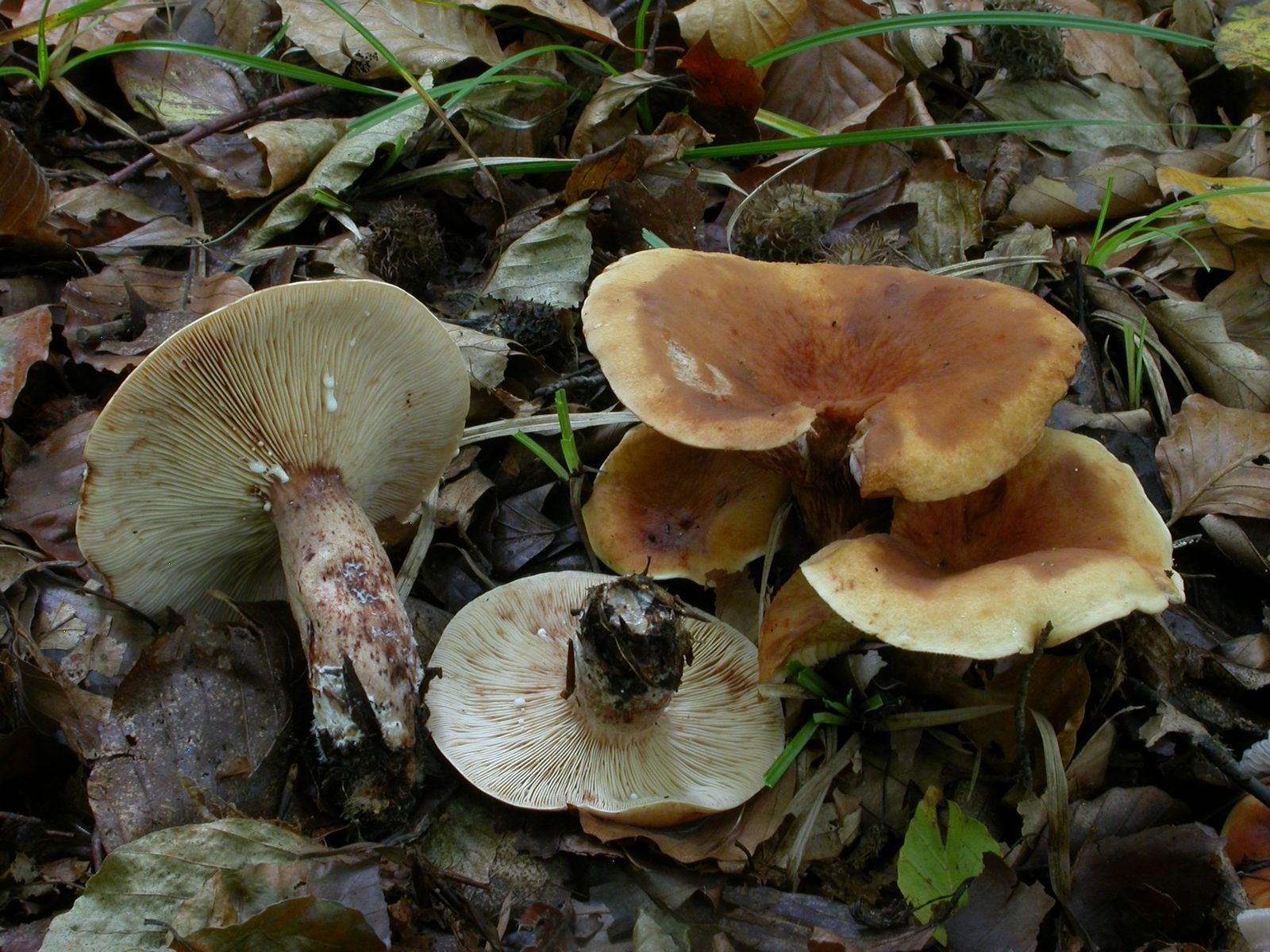 ein Fund von vor 3 Wochen aus dem Kalkbuchenwald, vereinzelt Tanne und Kiefer, Mittelgebirgshanglage. Hut relativ kräftig gefärbt (Fotos zu blass), Milch weisslich, auf dem Taschentuch nach 10min etwas kräftiger altweiss, keine Farbveränderung, später offenbar bräunend (siehe Lamellen). Geschmack mild, später etw. adstringierend (vergl. L. subdulcis). Geruch würzig, aber eher kein Maggi, angenehm. Könnte das auf L. fulvissimus passen?