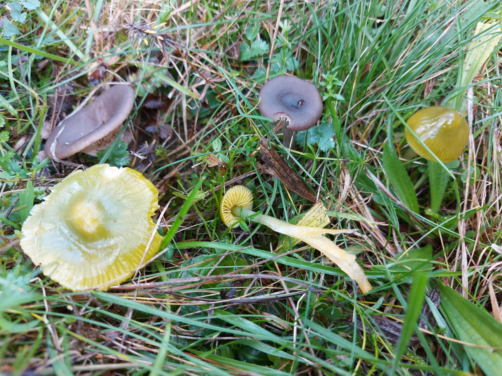 Ich habe immerhin ein halbwegs passables Handyfoto von einem der gelben Saftlingen zustande bekommen.