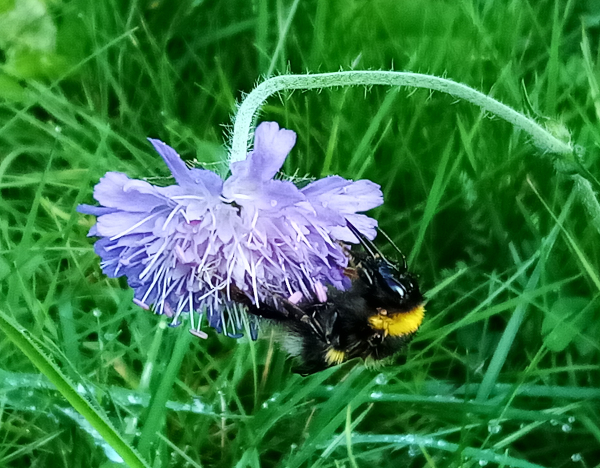 Dort stand auf einem Ästchen auch ein Miniporling, der mit auf die Wiese musste um ihn besser fotografieren