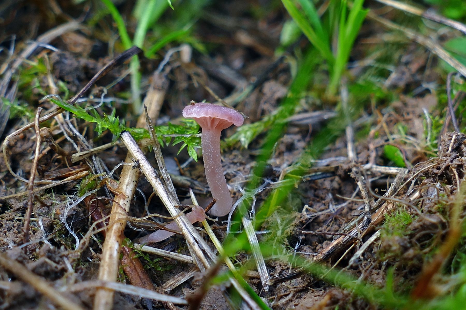 ...die teilweise in direkter Nachbarschaft mit Kaffeebraunen Gabeltrichterlingen wuchsen: