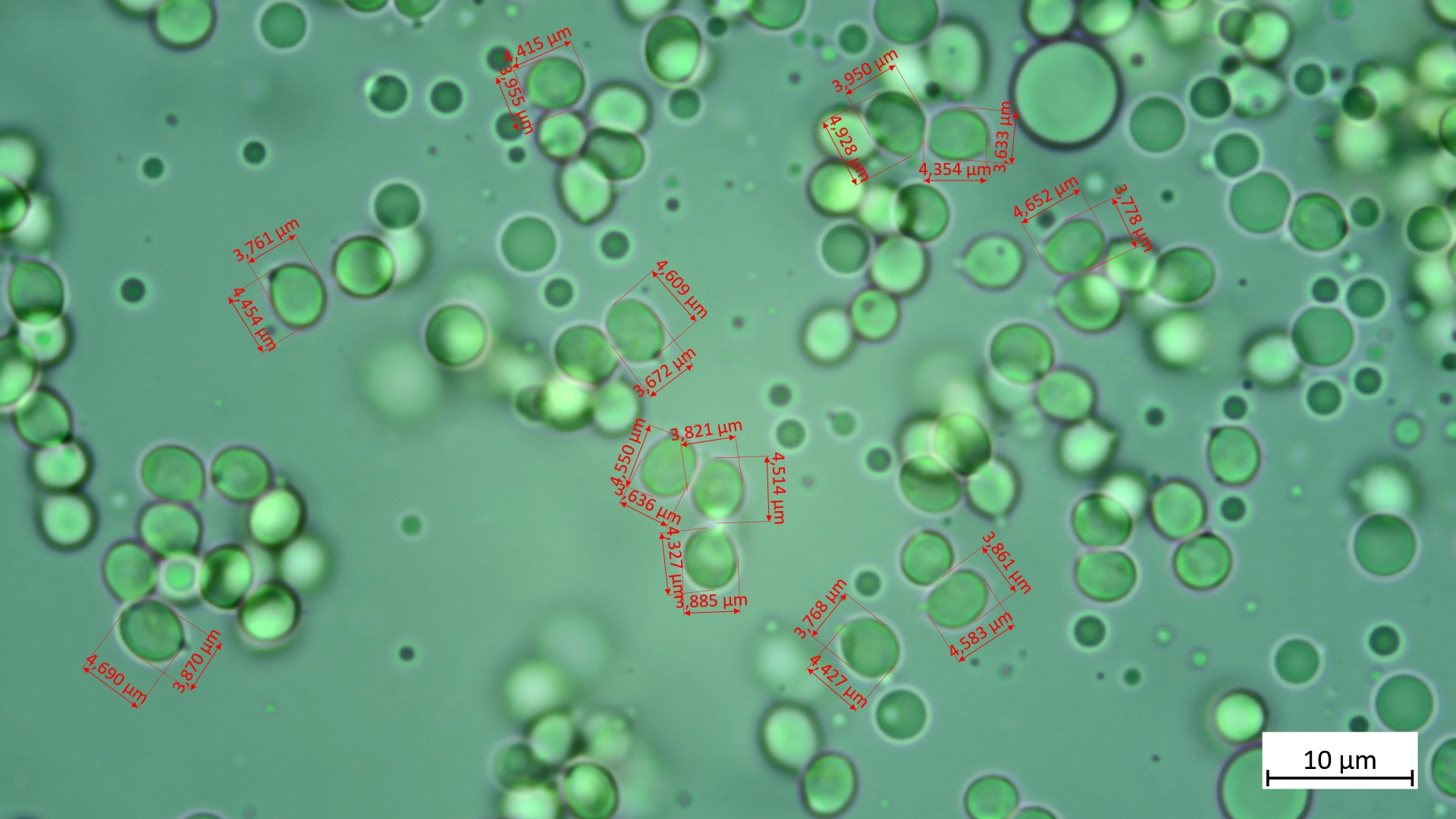 4,3-4,9 µm (av. 4,6 µm, SD 0,2 µm) x 3,6-4,0 µm (av. 3,8 µm, SD 0,1 µm); Q = 1,1-1,3 (av. 1,2, SD 0,0)(n = 12)