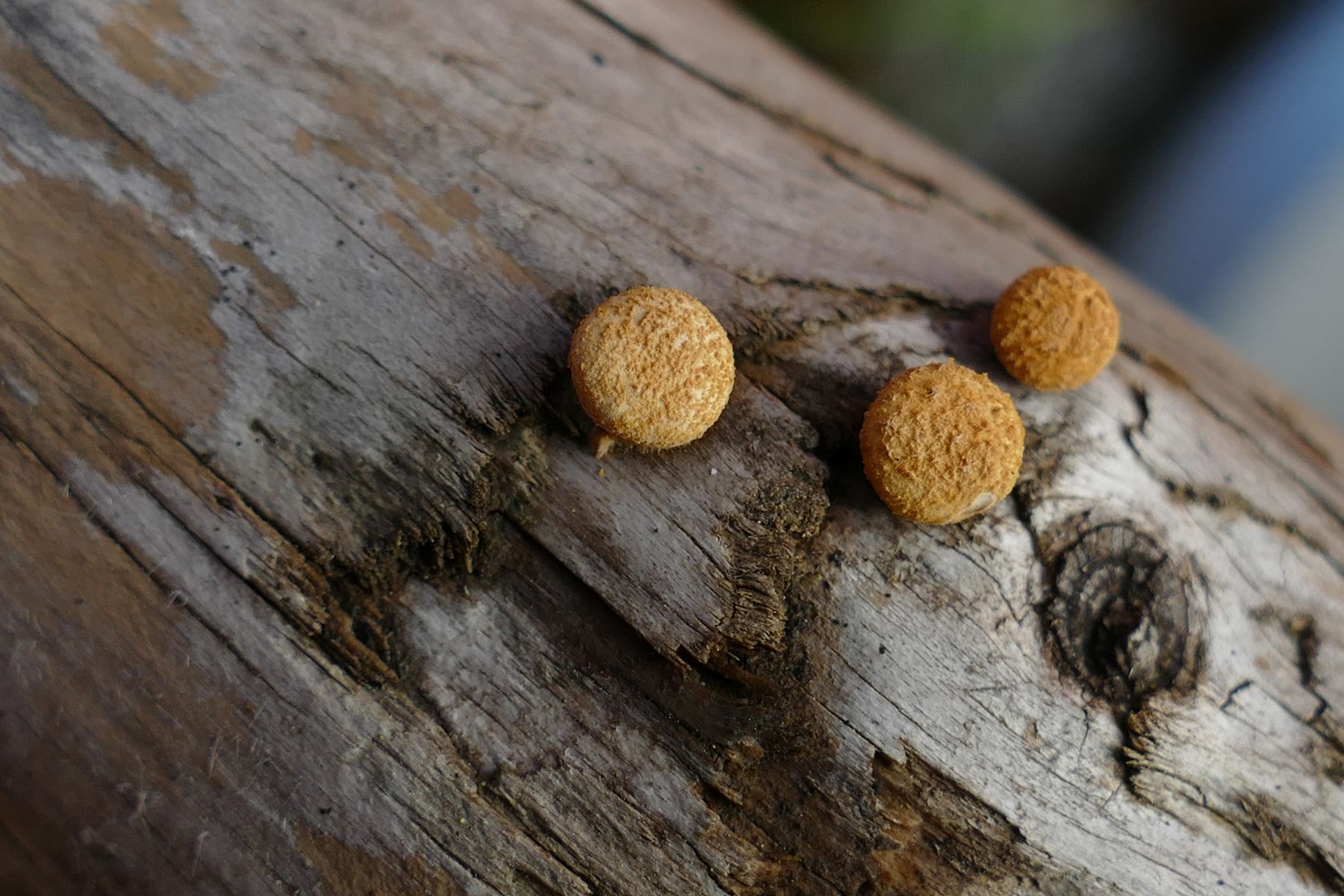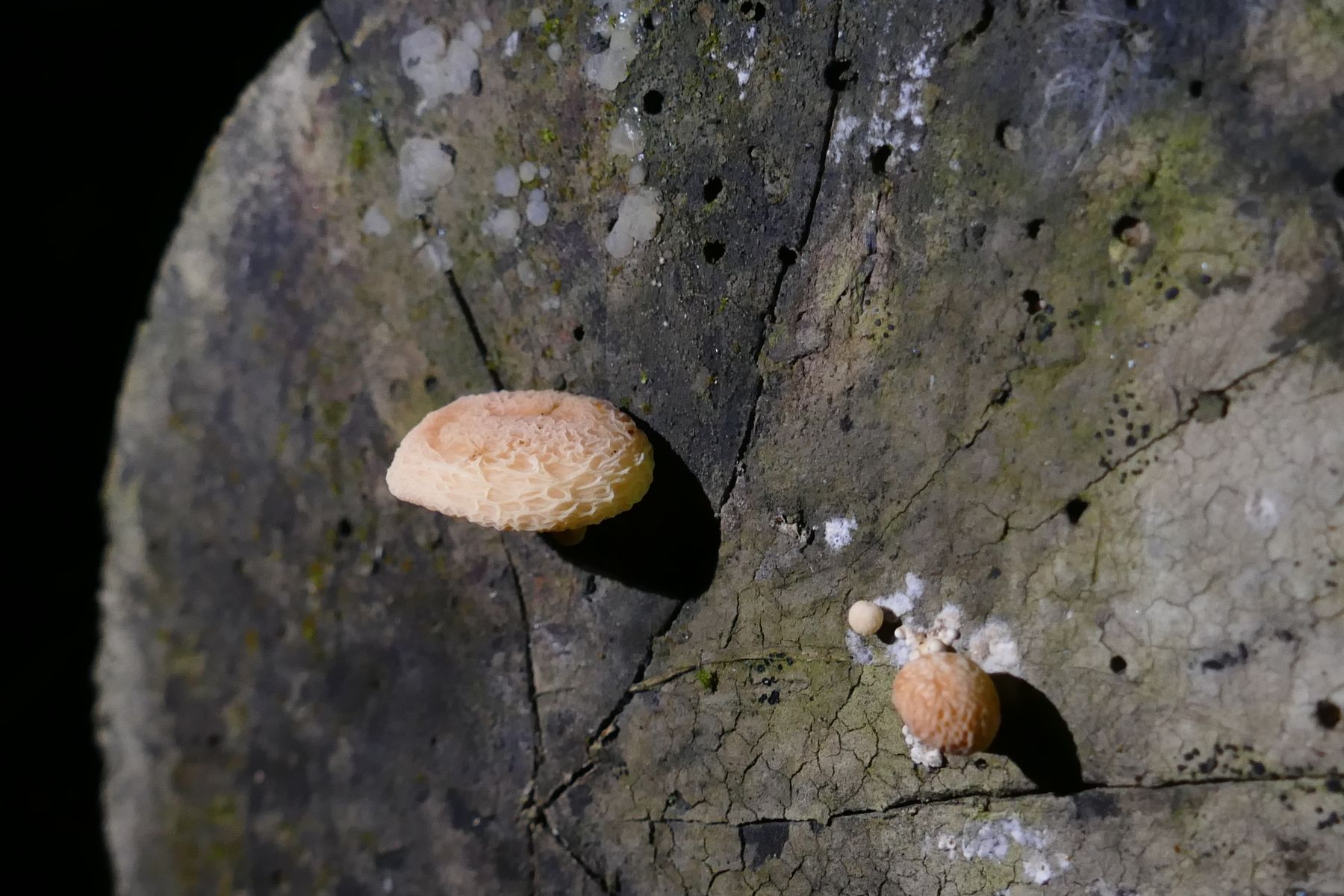 Ansonsten auf Wiesen (und erstaunlicherweise auch im Wald auf Holz) noch keine ausgewachsenen Exemplare, sondern Hexeneier vom dort bekannten:
