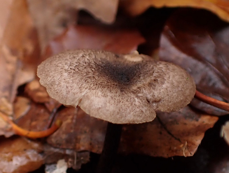 Der kleine braune stark geriefte und gefurchte Wiesenbewohner wurde von mir rein makroskopisch auf Omphalina griseopallida, Filziger Nabeling getauft, aber unter absolutem Vorbehalt.