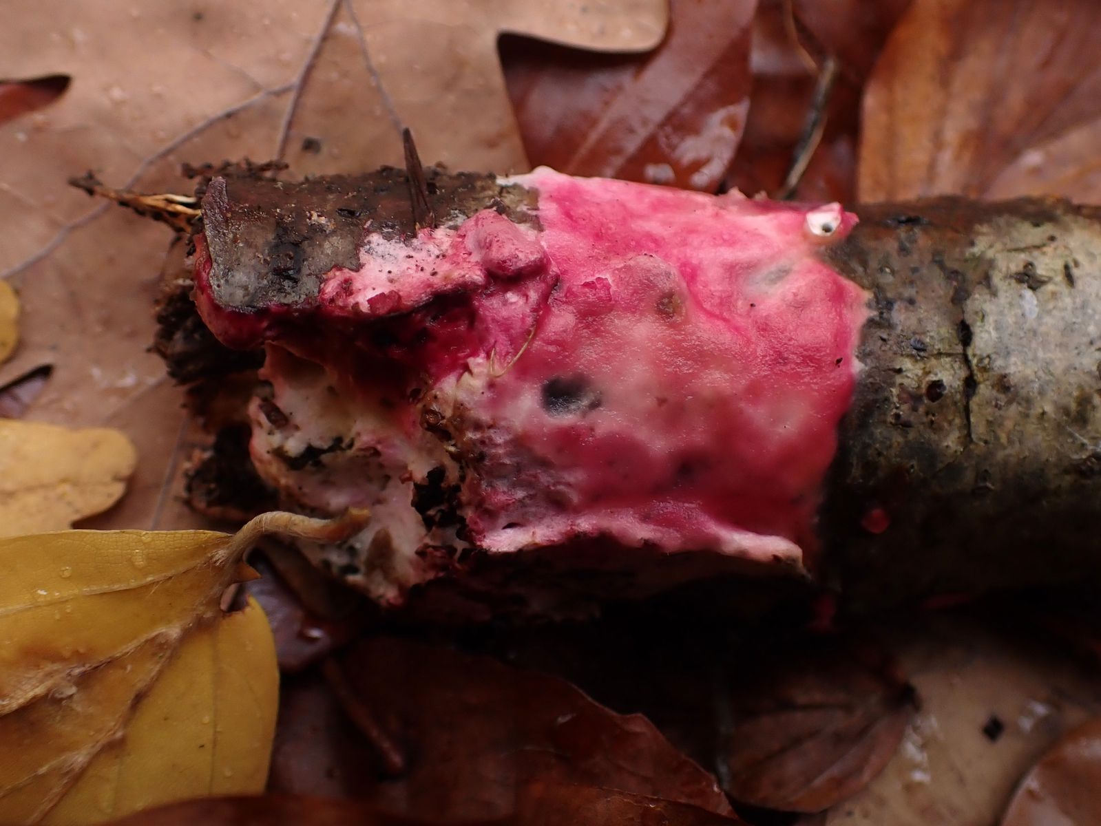 Den rosa Rindenpilz hat Chris (wenn ich es richtig erinnere) als Hypomyces rosellus angesprochen. Wurde im Rhein-Main- Gebiet dieses Jahr offenbar schon ein paar mal gesichtet.