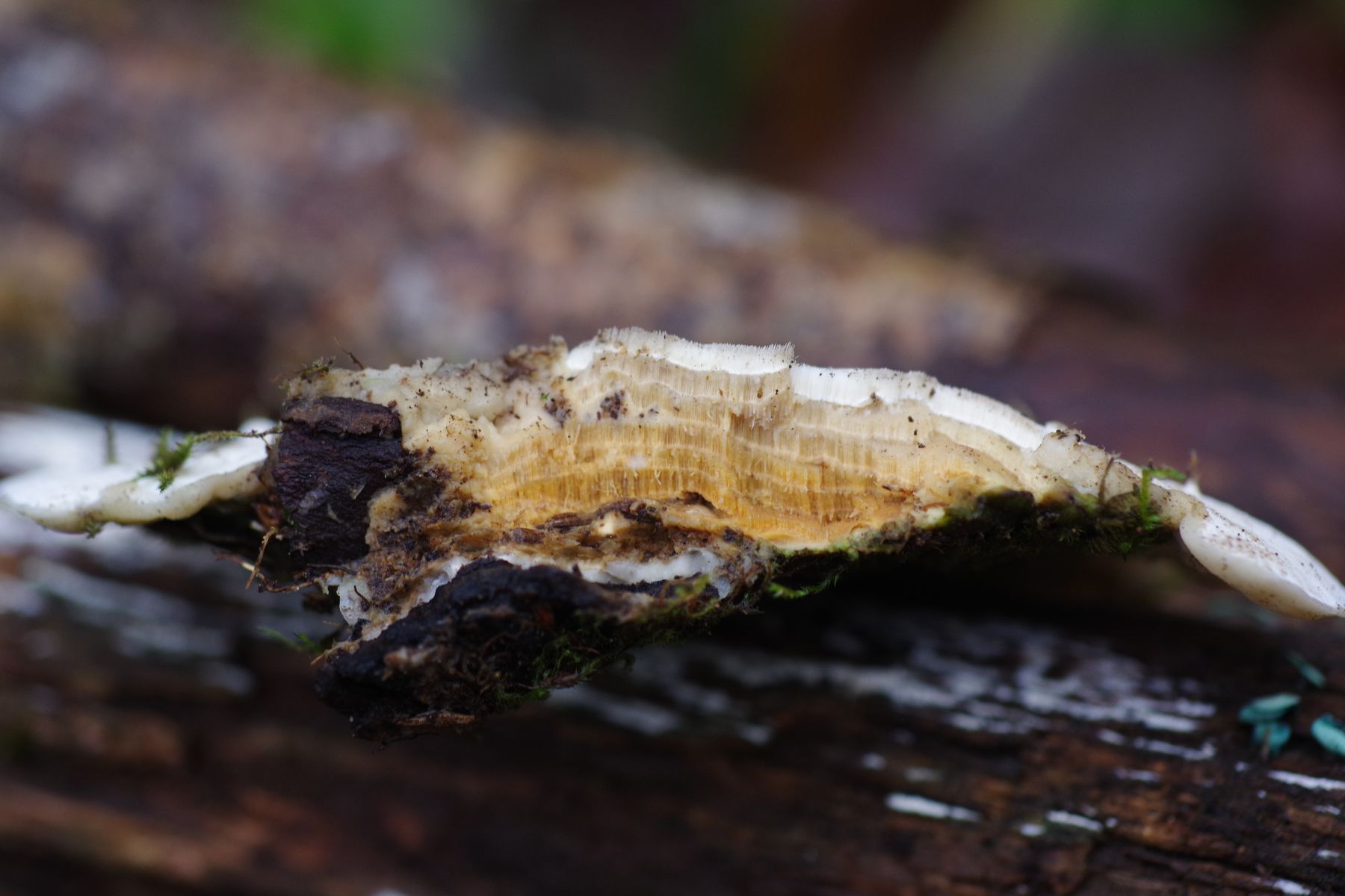 Zumal Steccherinum bourdotii makroskopisch schon anders aussieht als dein Fund. Der tendiert zB stark zur Hütchenbildung, davon ist bei dem Fruchtkörper hier nichts zu sehen, dafür im Gegensatz ganz fransig - wimperige Fruchtkörperränder, eher so wie bei Steccherinum fimbriatum. Auch das verhalten kenne ich von S. bourdotii nicht.