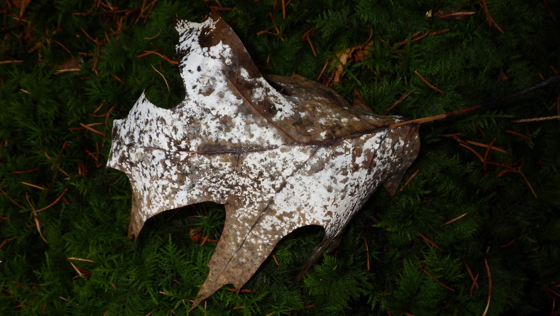 7) Auf einem Ahornblatt wuchs auch noch ein weisser Schimmelpilz