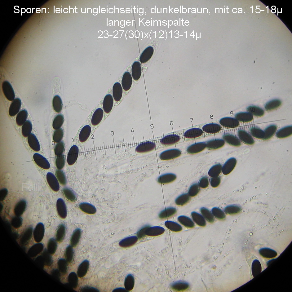 So, da ich ja zumindest jung 2-zellige Sporen gesehen hab, und meine gemessenen Sporen etwas größer als die von H.equorum sind+ der Keimspalt auch etwas länger ist, lande ich nun bei