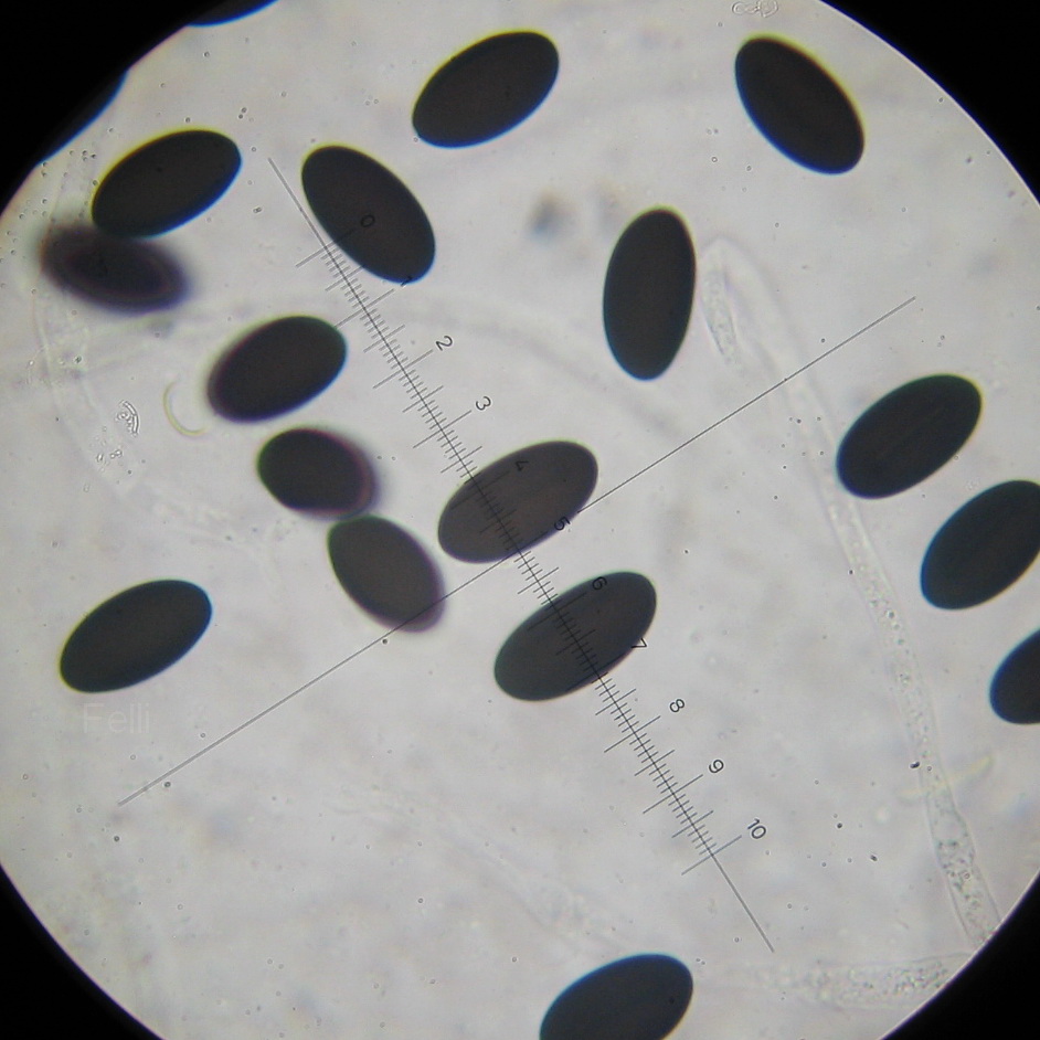 5) Spores one-celled, 19-23 (-27) x 9-12 (-14) flID (25-28 x 11.5-13.5, LOHMEYER, 1995), slightly