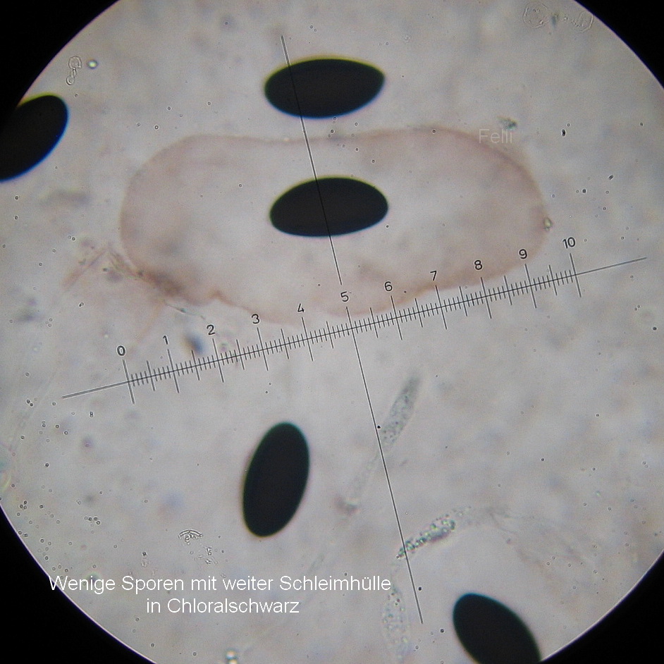 Bei einzelnen Sporen konnte ich noch eine weite Schleimhülle in Chloralschwarz beobachten