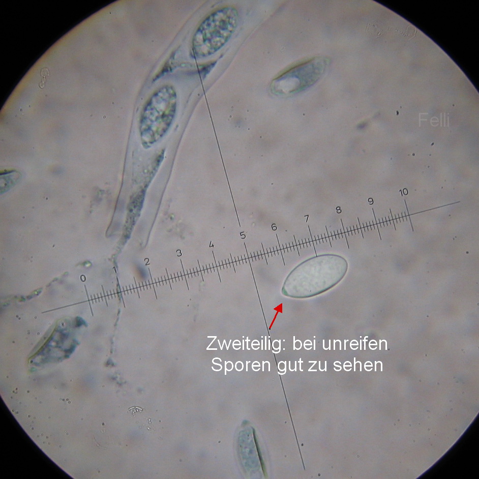 Bei unreifen Sporen ist die "Zweiteiligkeit" noch gut zu sehen