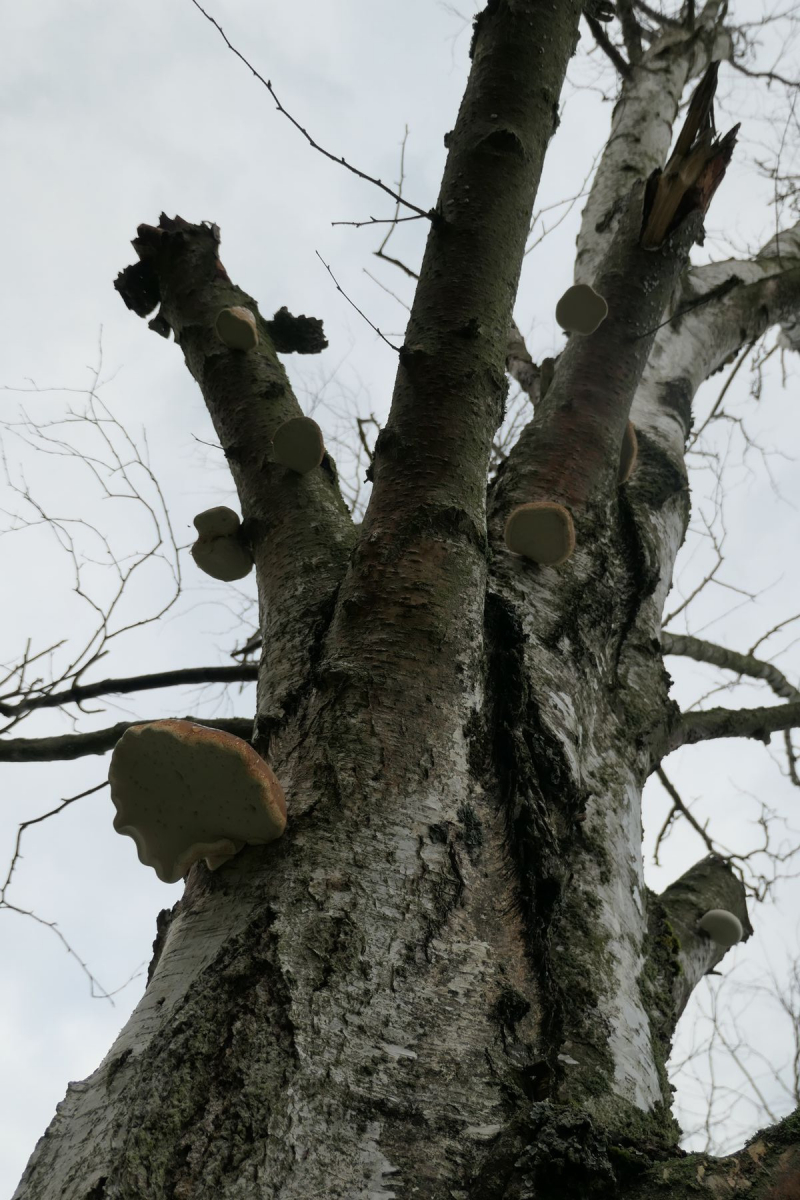 im Sommer bin ich auf meiner Fahrradrunde an dieser Birke vorbei gekommen. Ich habe mir gedacht: Da wachsen Porlinge.