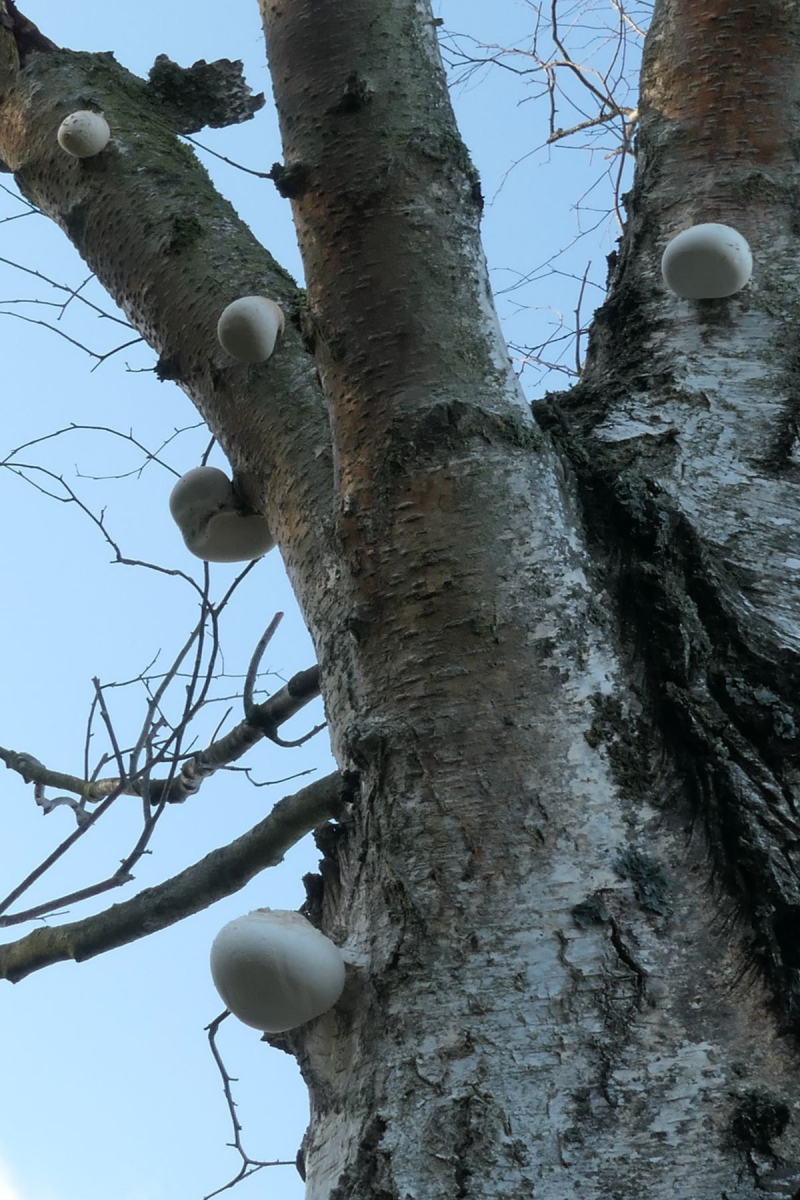 im Sommer bin ich auf meiner Fahrradrunde an dieser Birke vorbei gekommen. Ich habe mir gedacht: Da wachsen Porlinge.