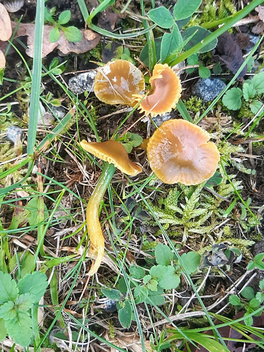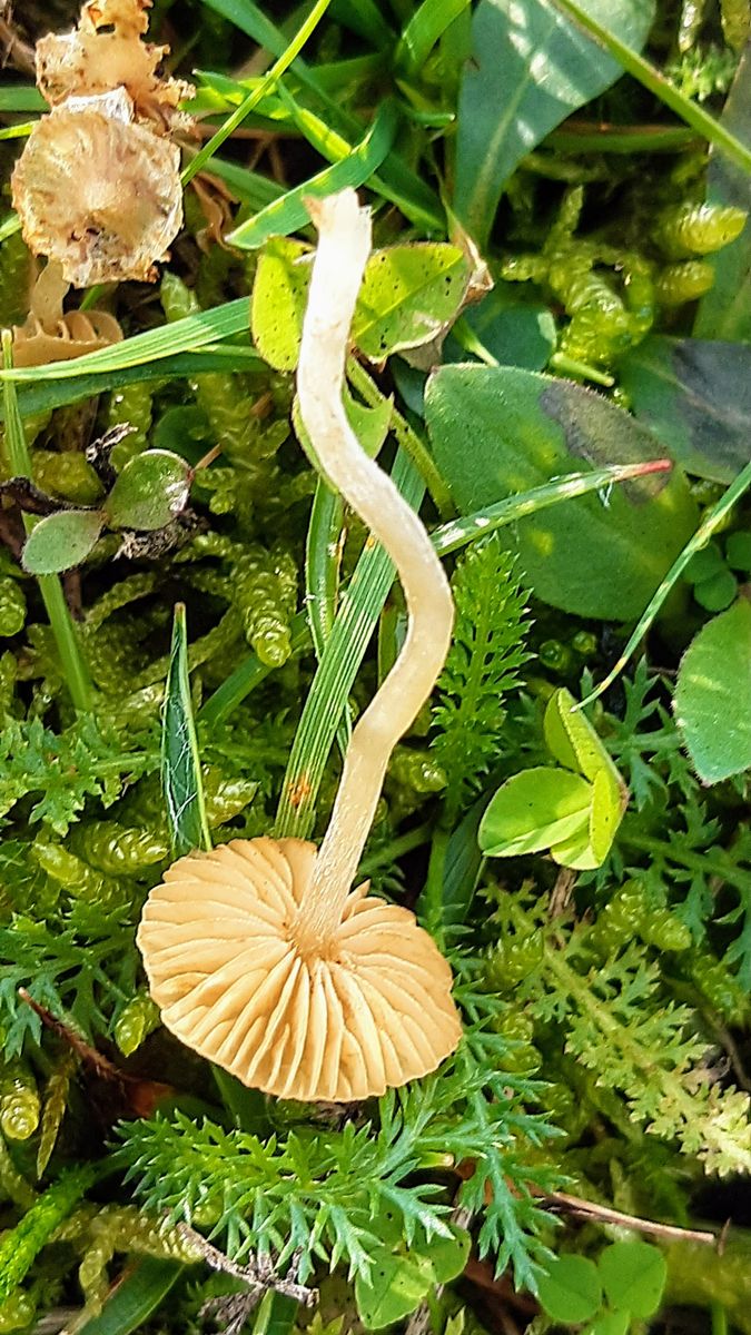An der selben Stelle wie letztes Jahr standen wieder kleine gelbe Saftlinge mit schleimigem Hut und Stiel. Mit dem Hygrocybe Schlüssel von David Boertmann kam ich schließlich auf Hygrocybe mucronella, Bitterer Saftling.