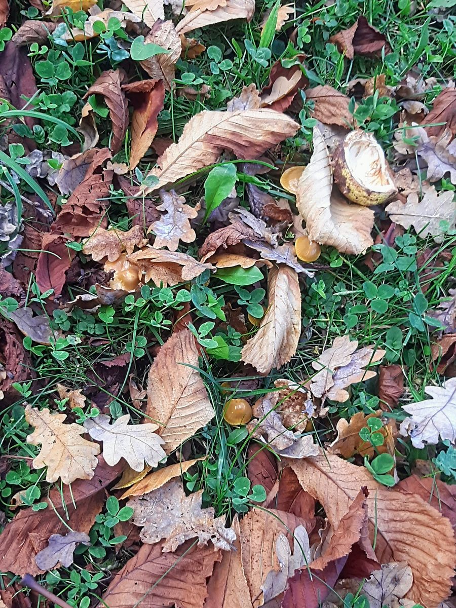 Dann Saftlinge, wie gesät. teils gut versteckt im herumliegenden Laub.