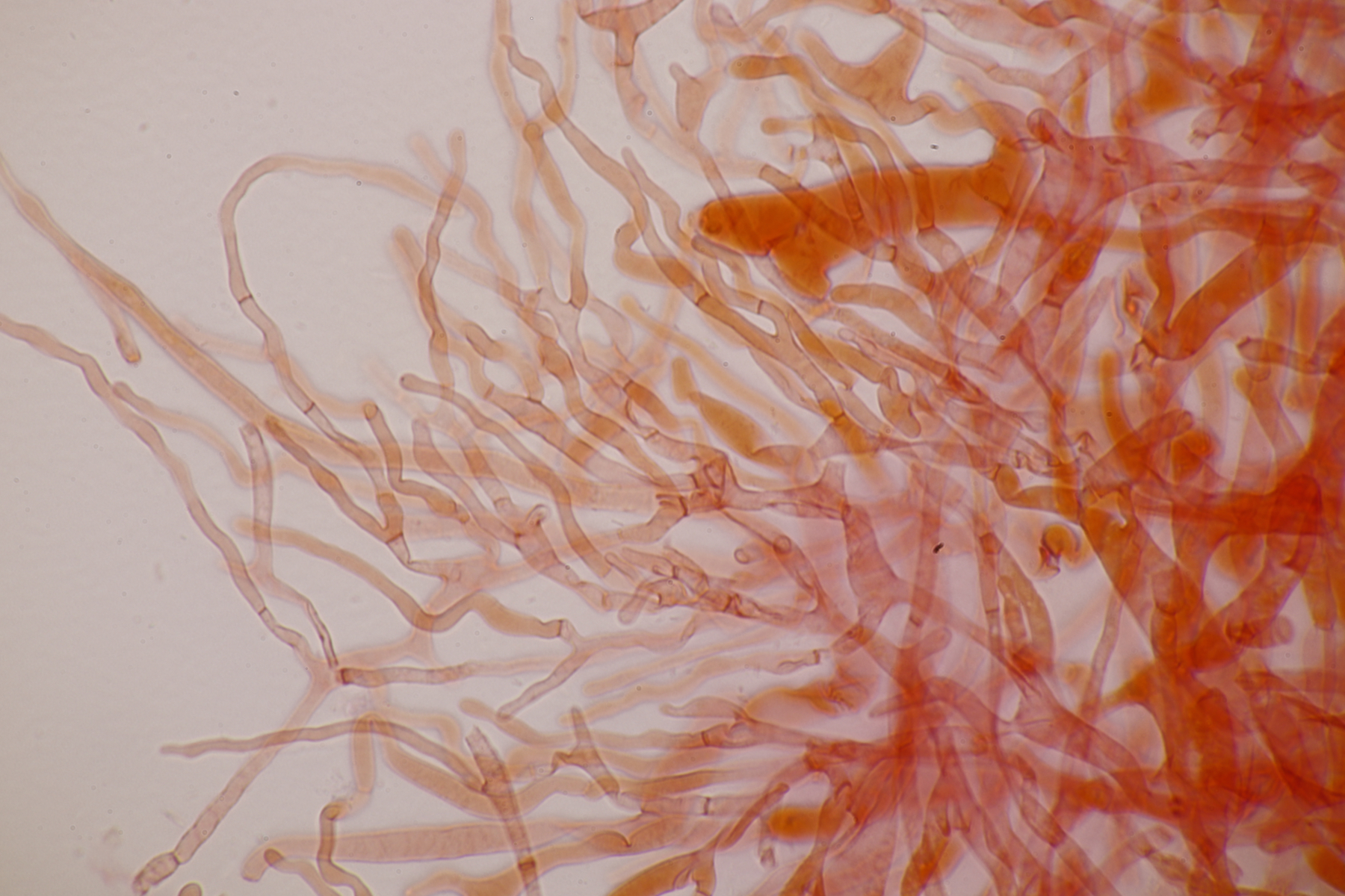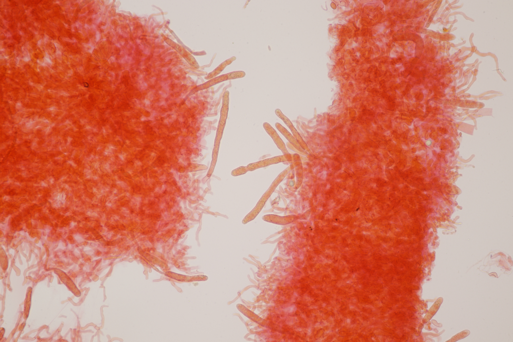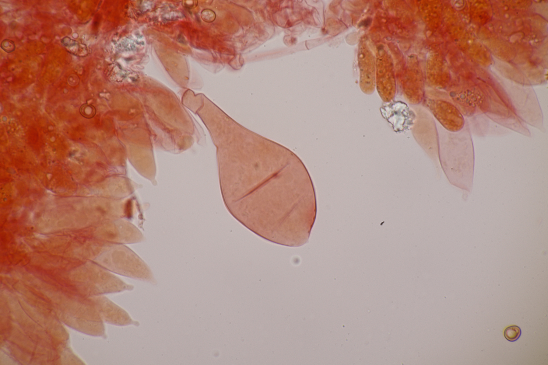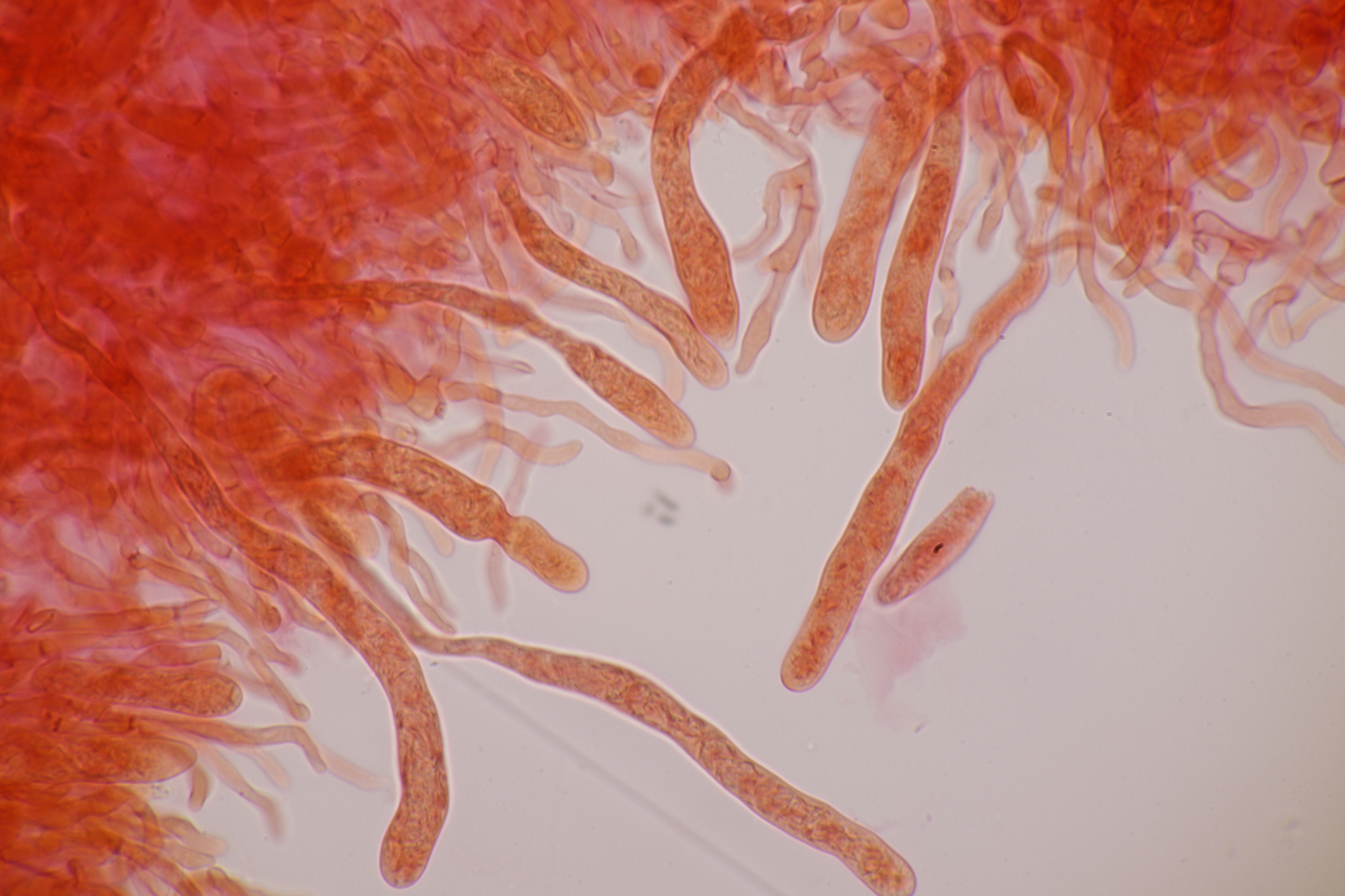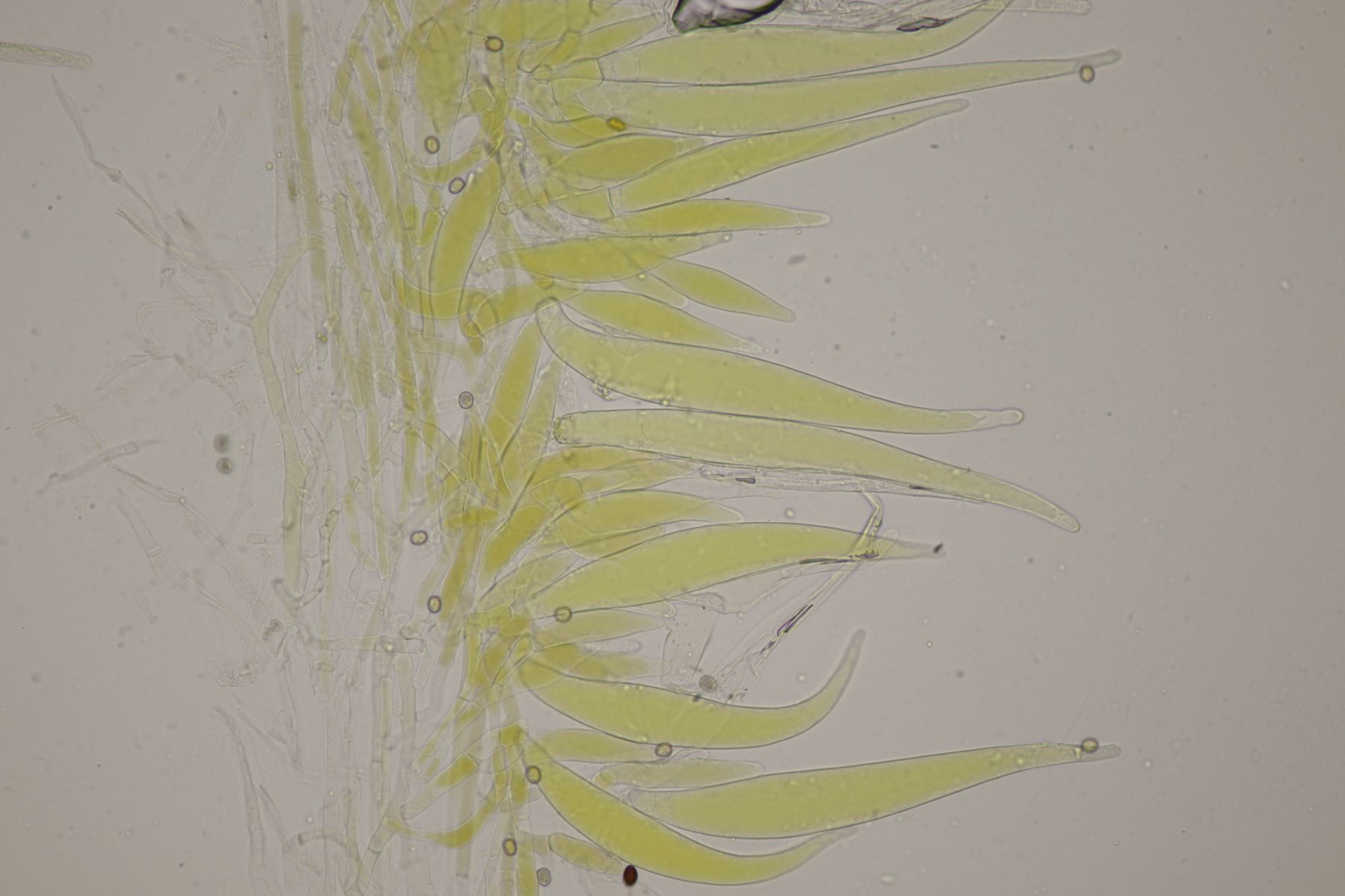 Die Hutfarben sind total untypisch und die Lamellen viel zu hell - erinnert mich eher an R. viscida. Mikroskopisch sehe ich deutliche Pileozystiden und zumindest teilnetzige Sporen mit niedrigem Ornament - passt auch nicht wirklich zu R. olivacea.