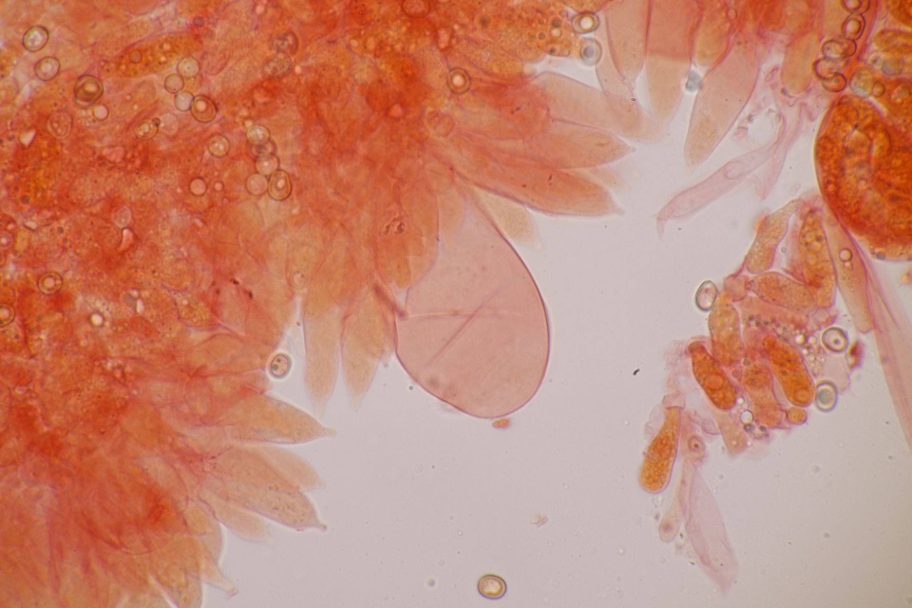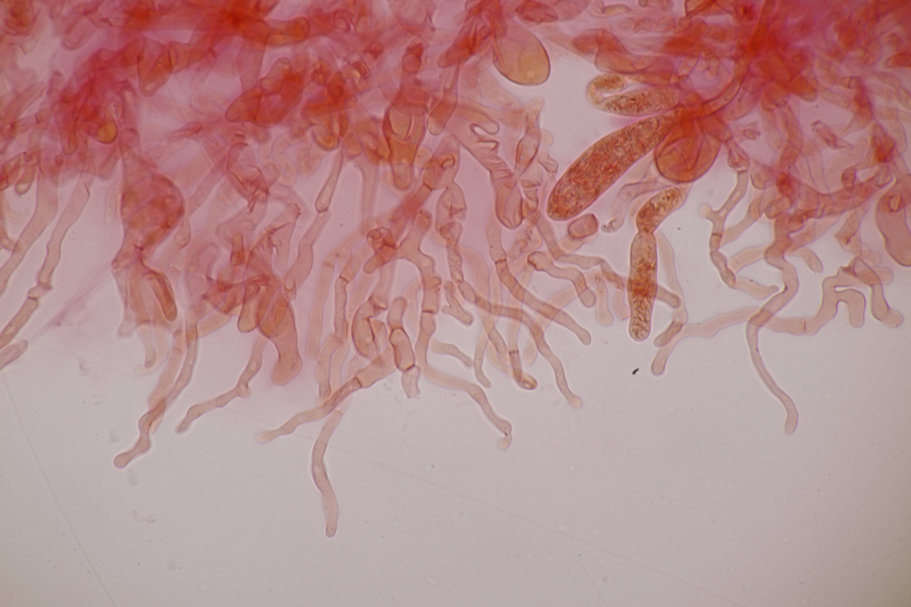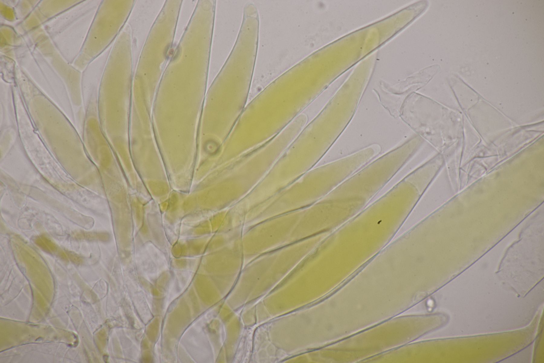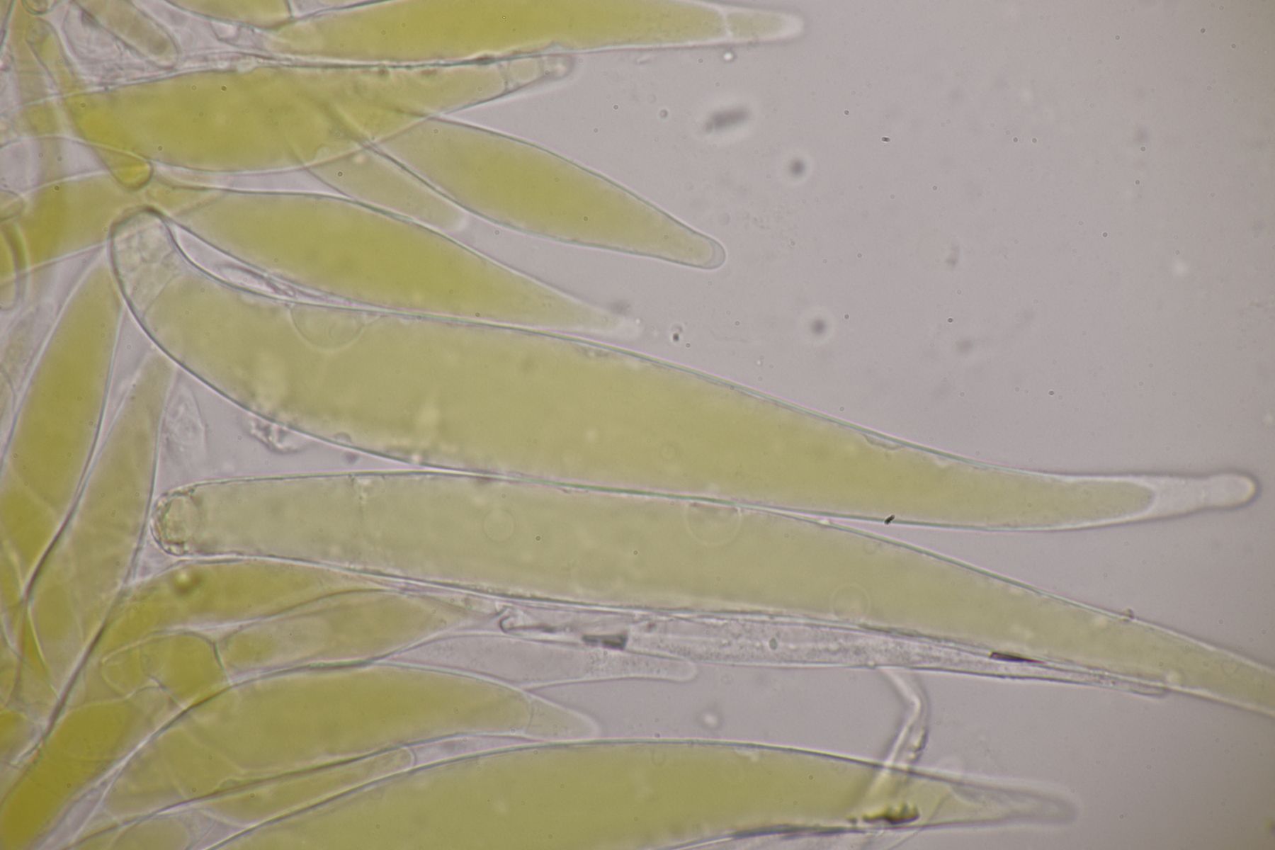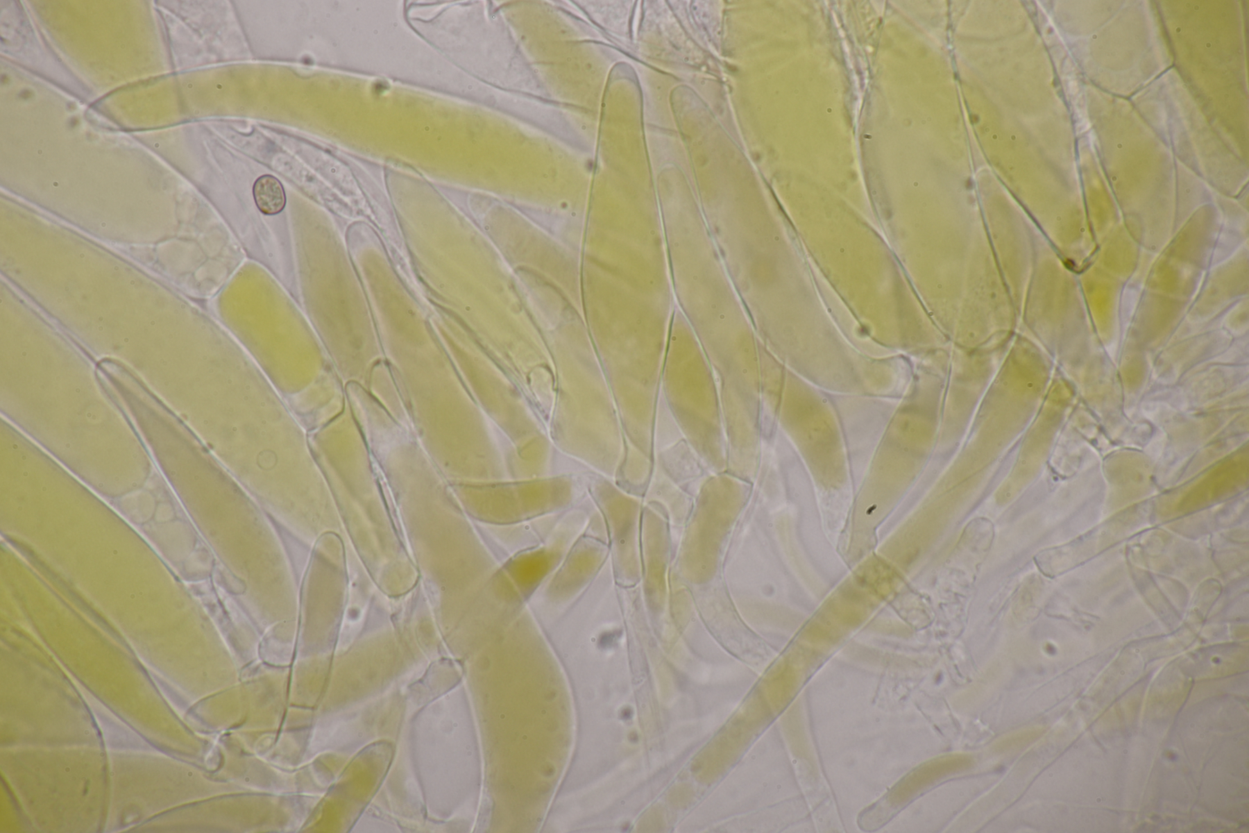Die Hutfarben sind total untypisch und die Lamellen viel zu hell - erinnert mich eher an R. viscida. Mikroskopisch sehe ich deutliche Pileozystiden und zumindest teilnetzige Sporen mit niedrigem Ornament - passt auch nicht wirklich zu R. olivacea.