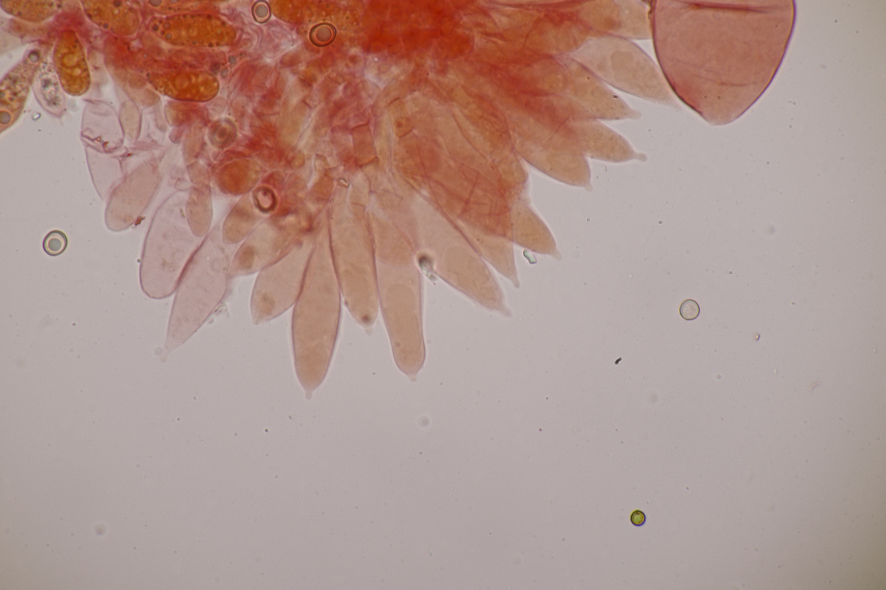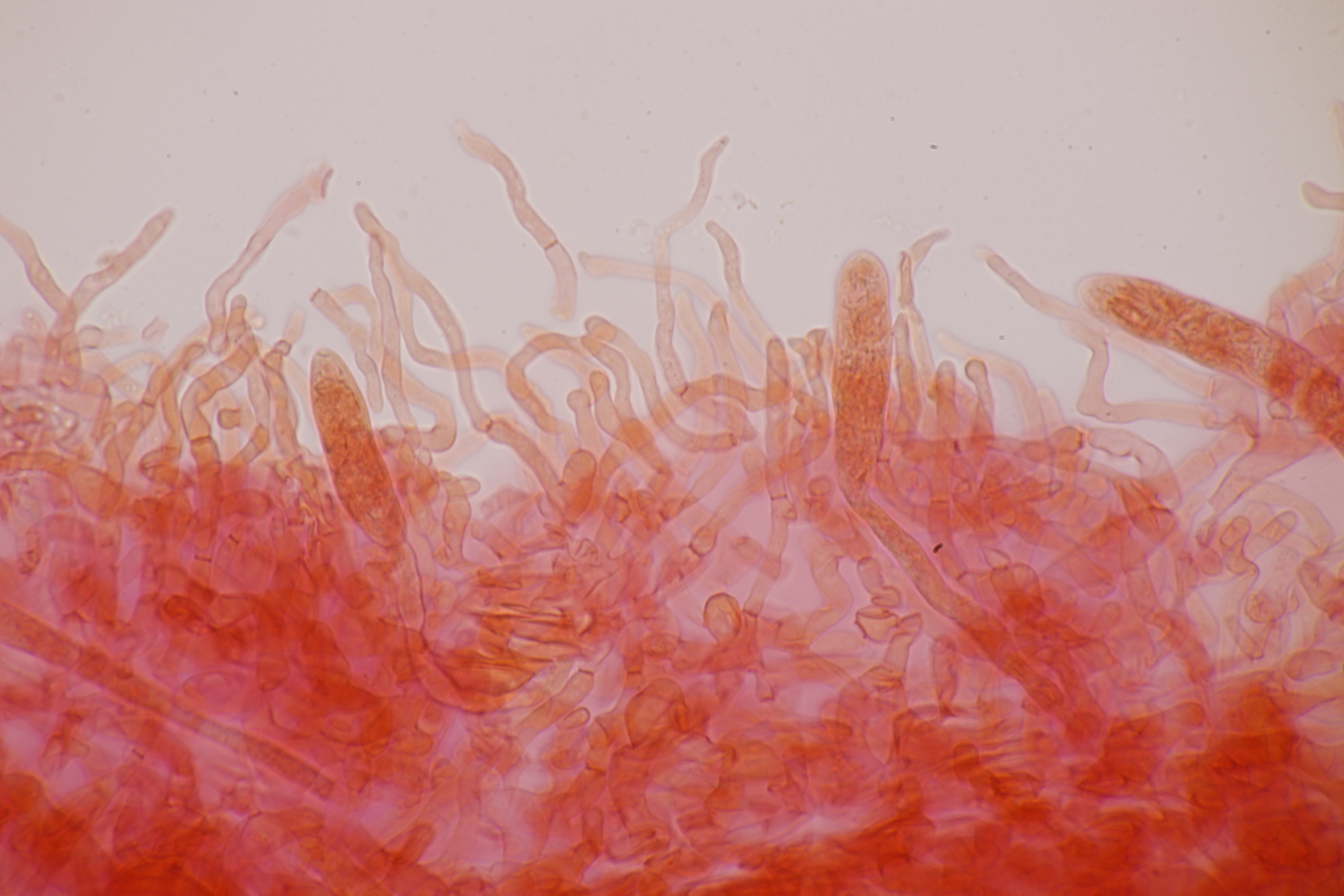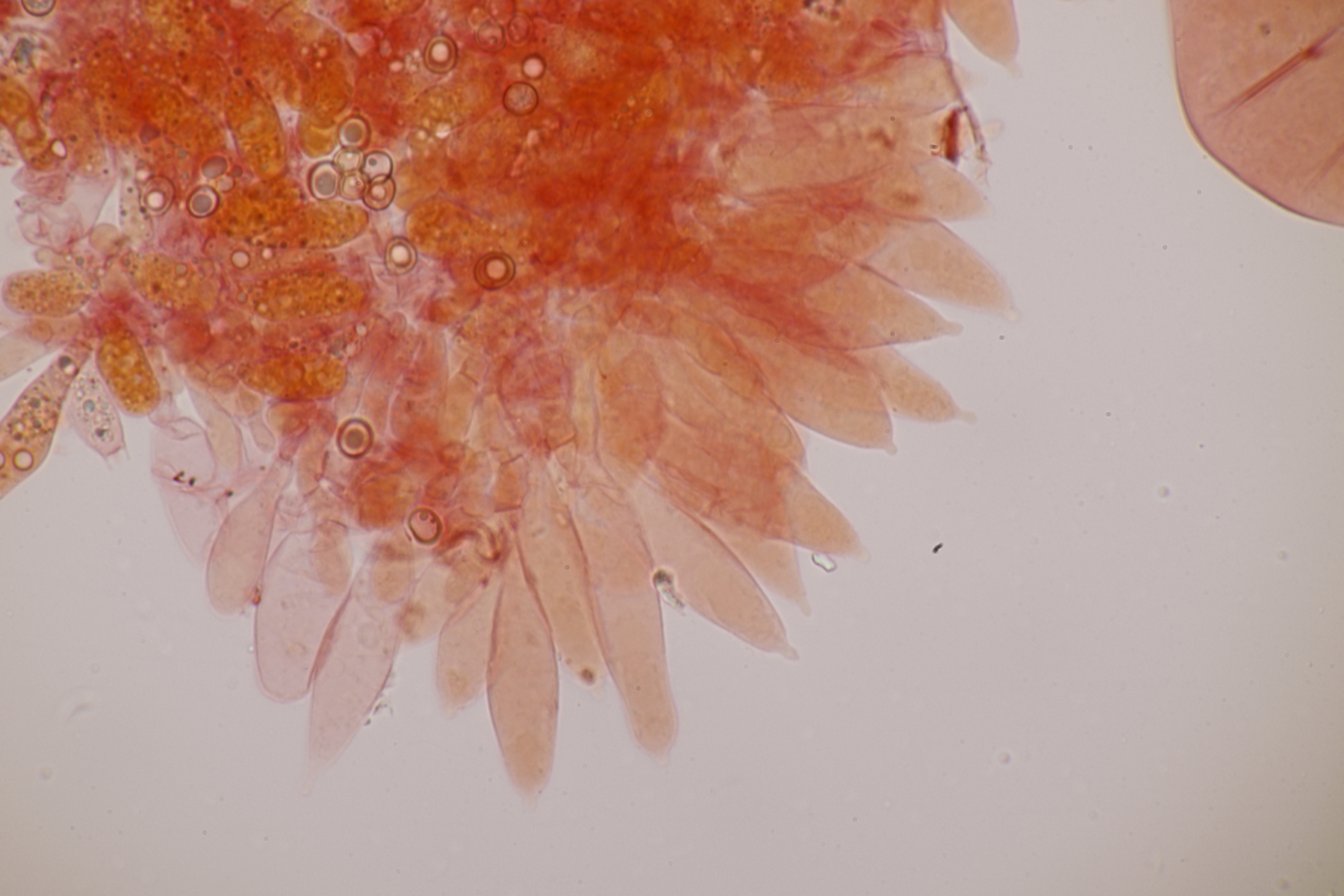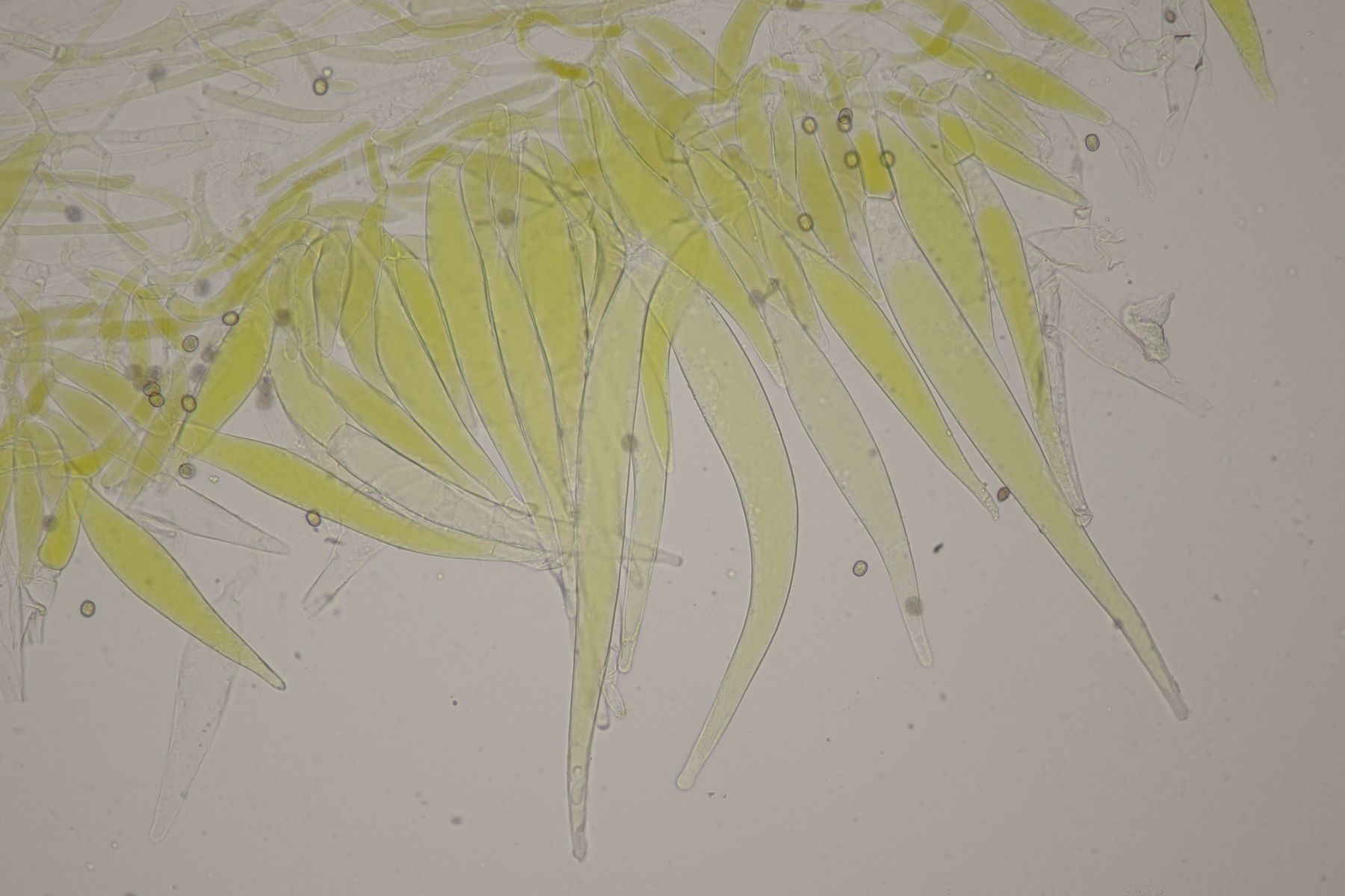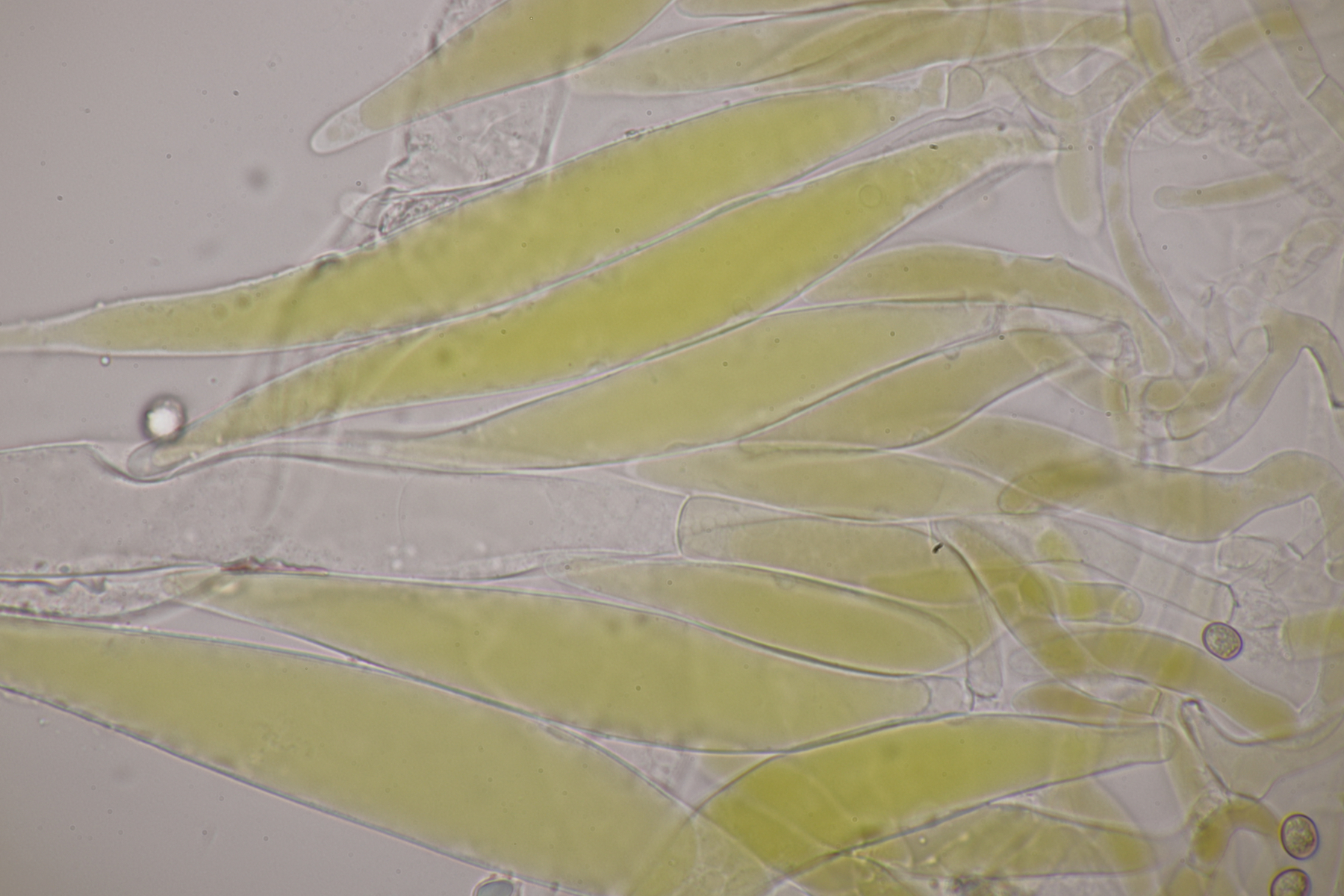 Die Hutfarben sind total untypisch und die Lamellen viel zu hell - erinnert mich eher an R. viscida. Mikroskopisch sehe ich deutliche Pileozystiden und zumindest teilnetzige Sporen mit niedrigem Ornament - passt auch nicht wirklich zu R. olivacea.
