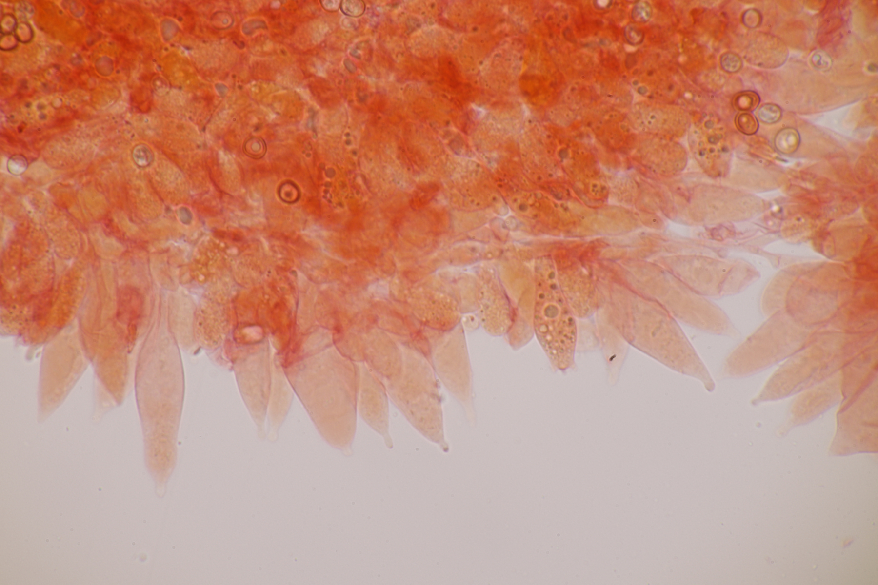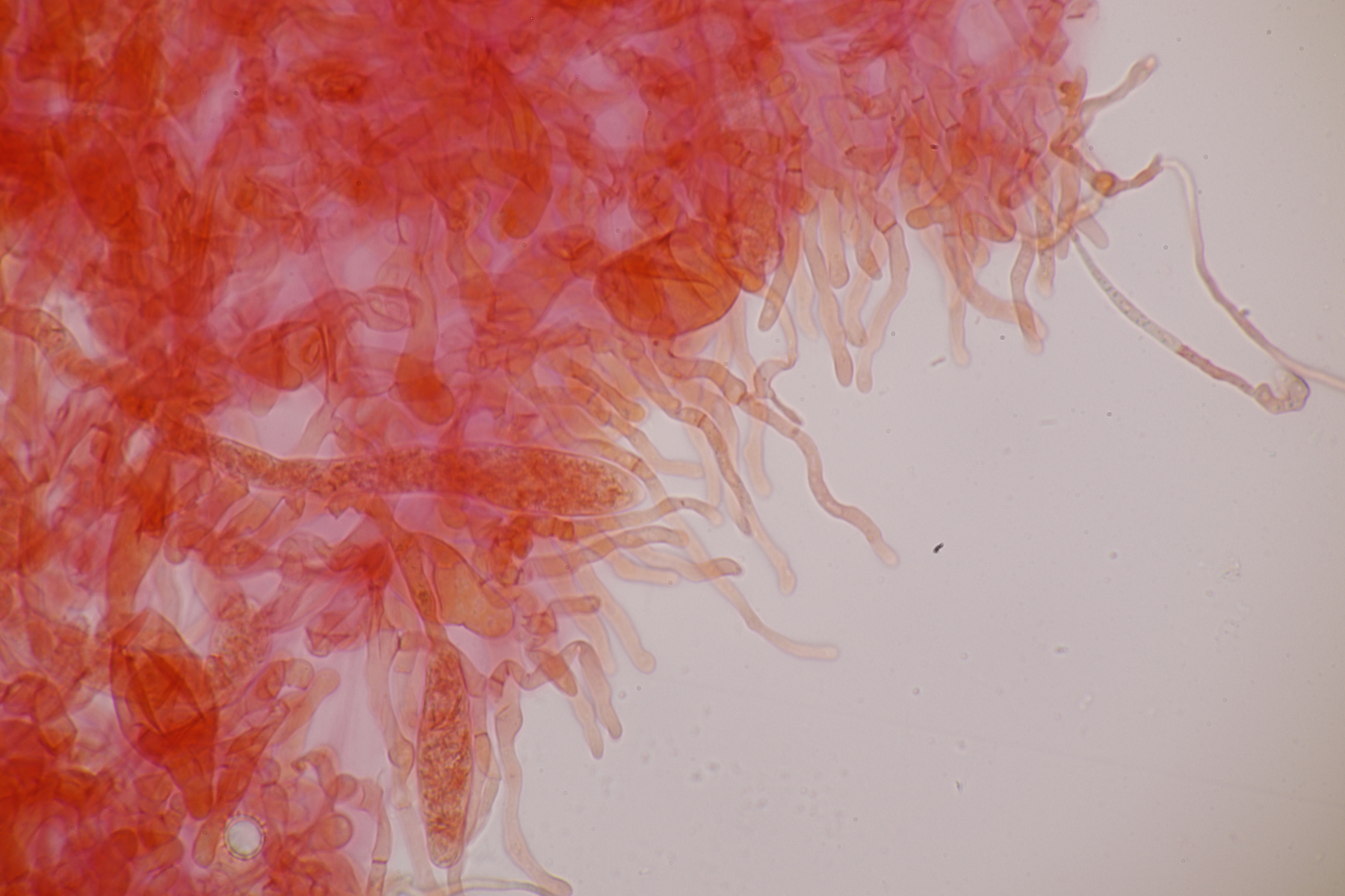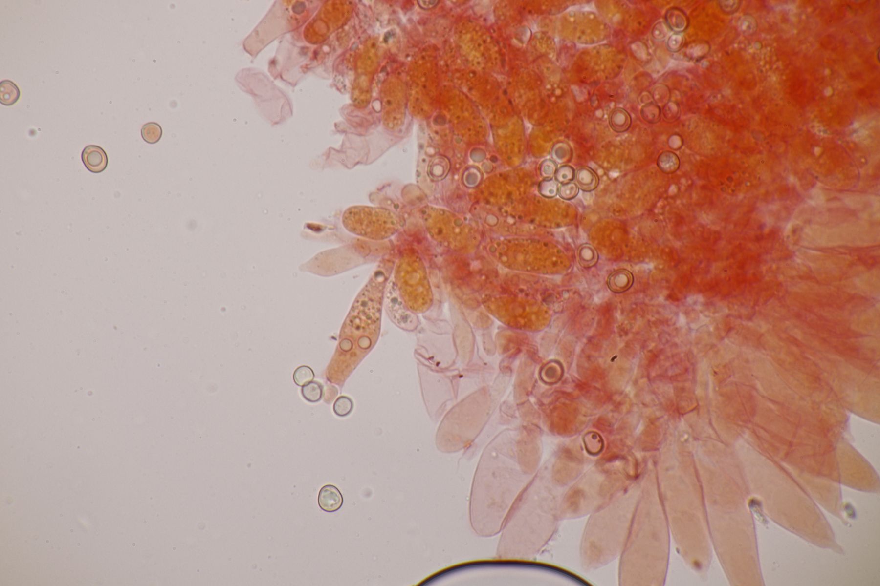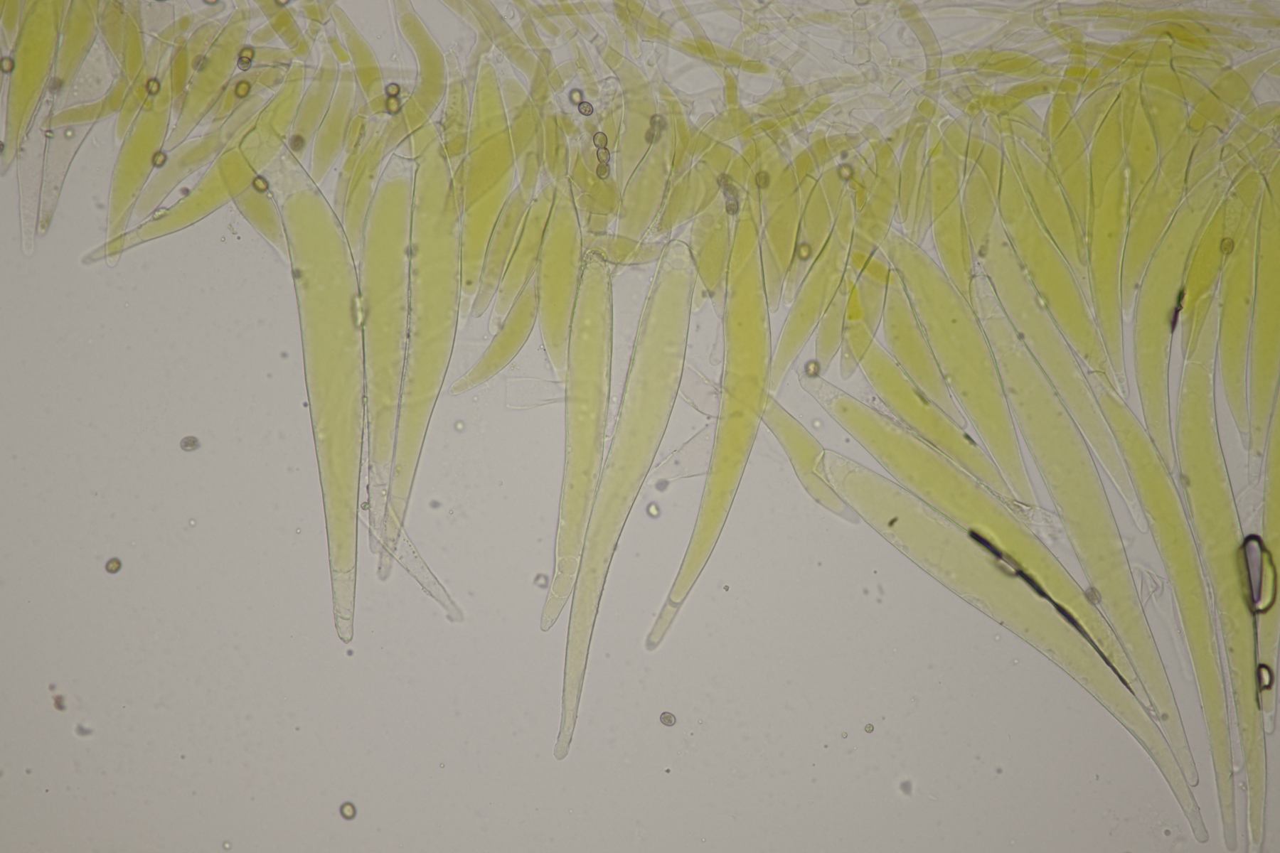 Die Hutfarben sind total untypisch und die Lamellen viel zu hell - erinnert mich eher an R. viscida. Mikroskopisch sehe ich deutliche Pileozystiden und zumindest teilnetzige Sporen mit niedrigem Ornament - passt auch nicht wirklich zu R. olivacea.