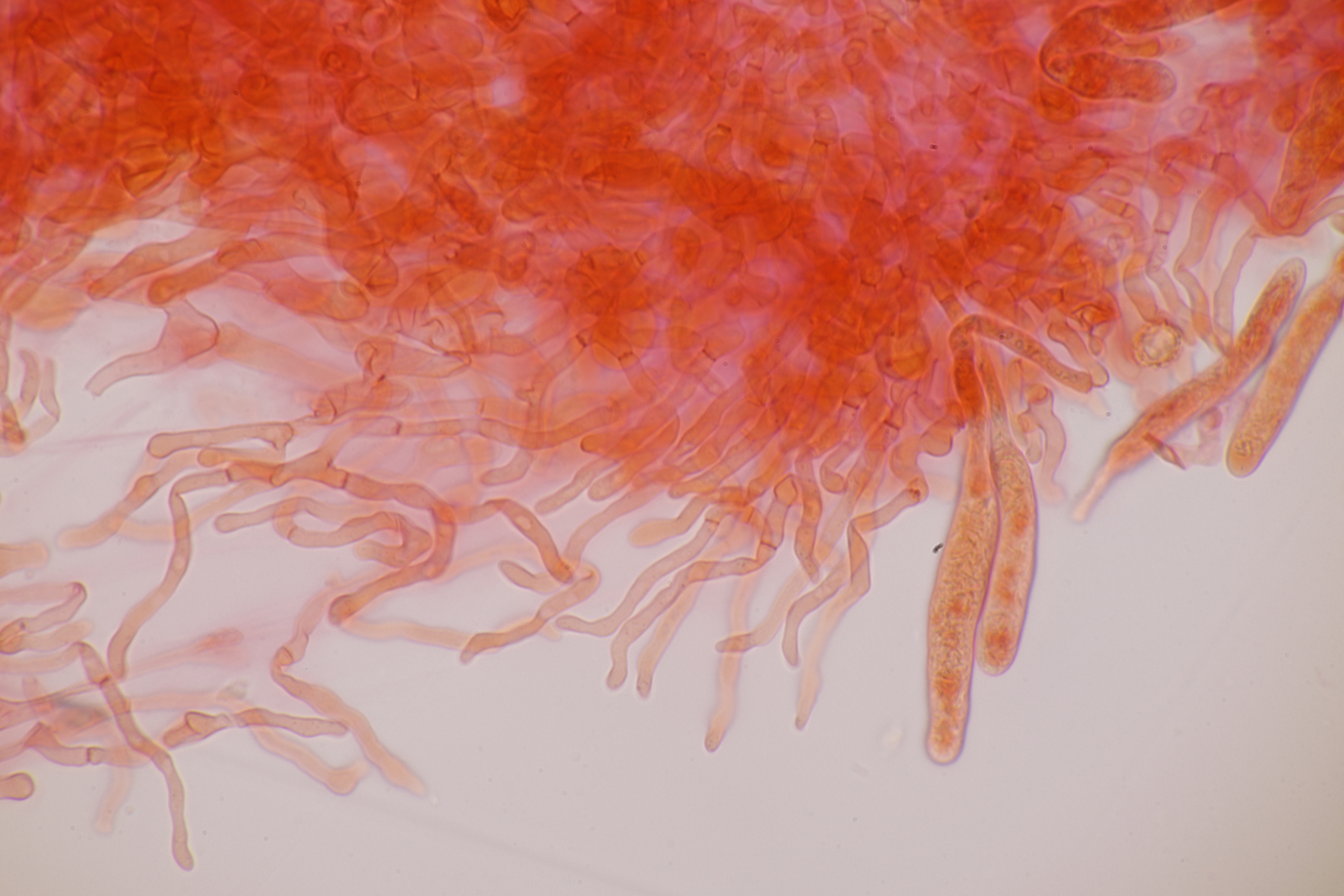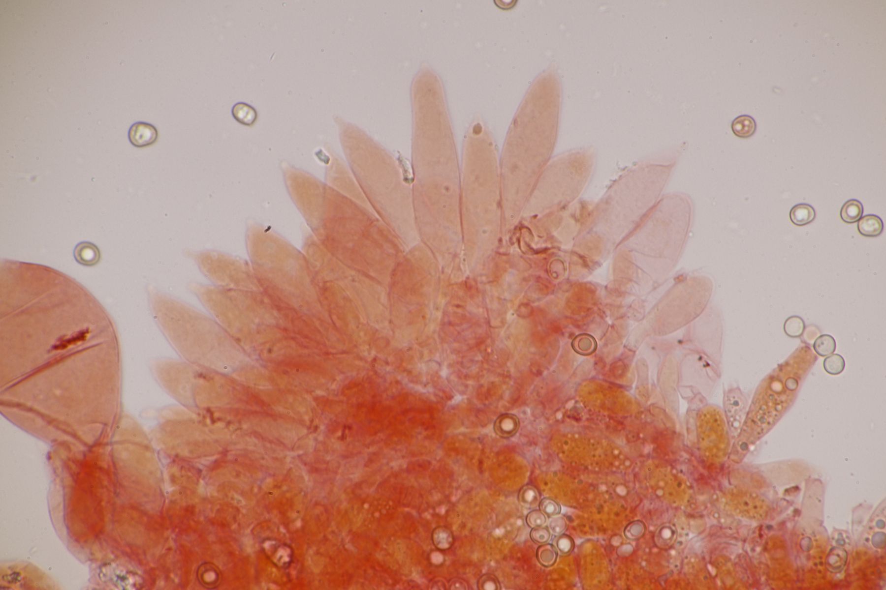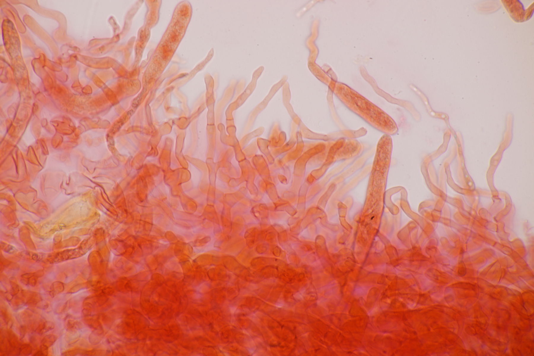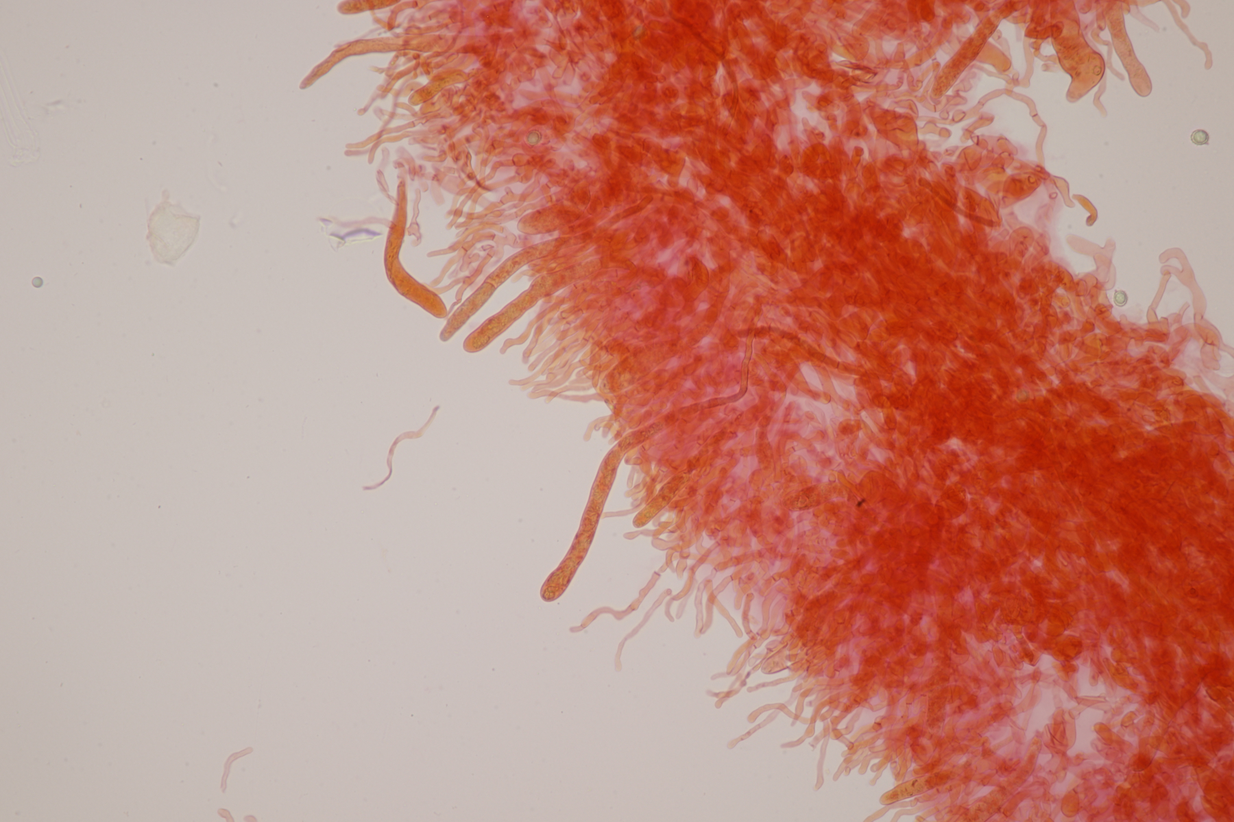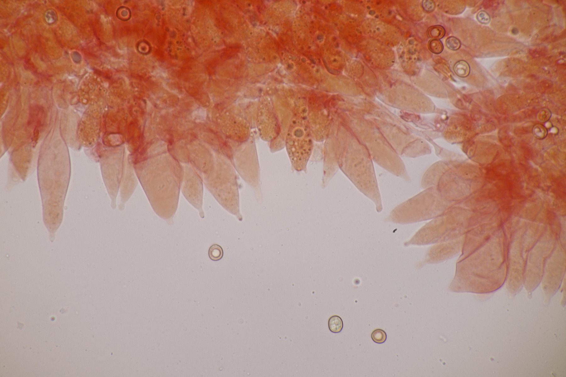 Die Hutfarben sind total untypisch und die Lamellen viel zu hell - erinnert mich eher an R. viscida. Mikroskopisch sehe ich deutliche Pileozystiden und zumindest teilnetzige Sporen mit niedrigem Ornament - passt auch nicht wirklich zu R. olivacea.