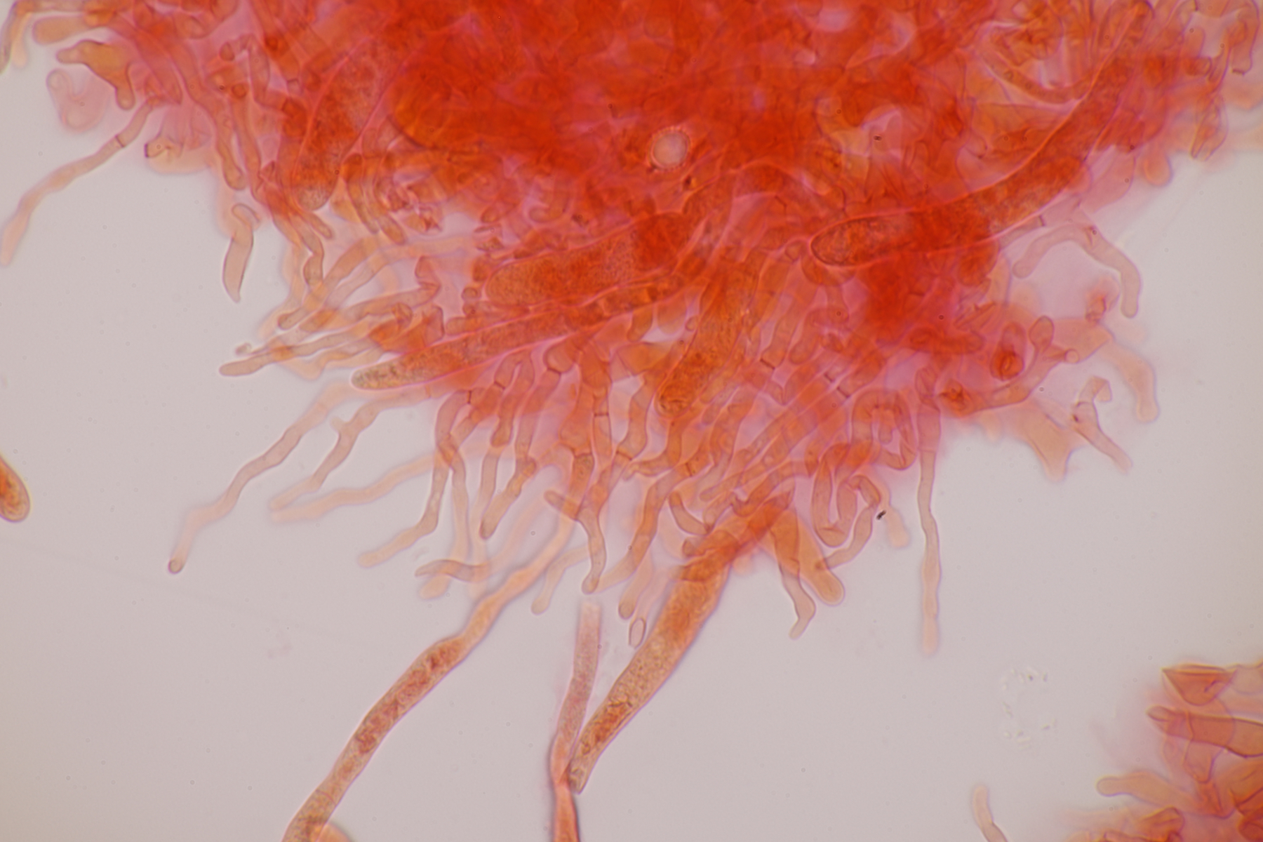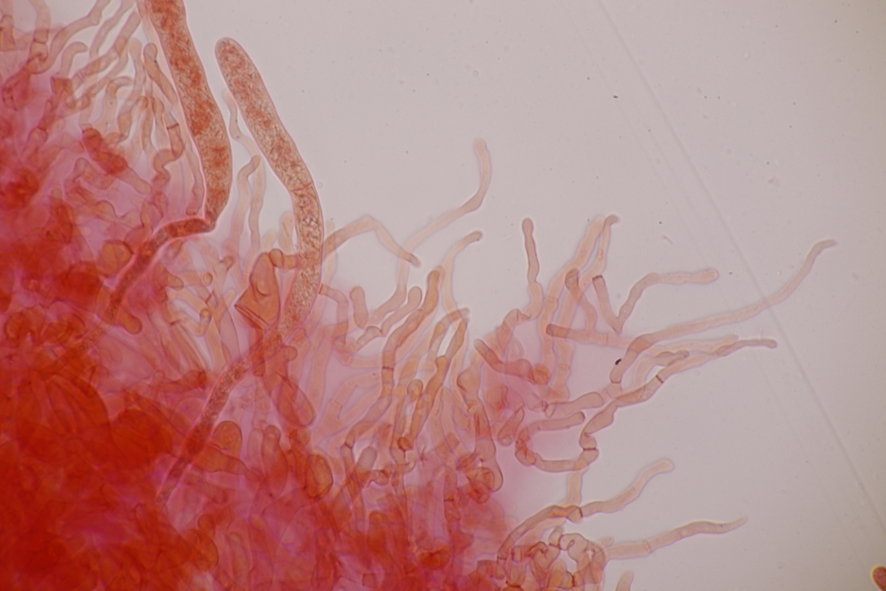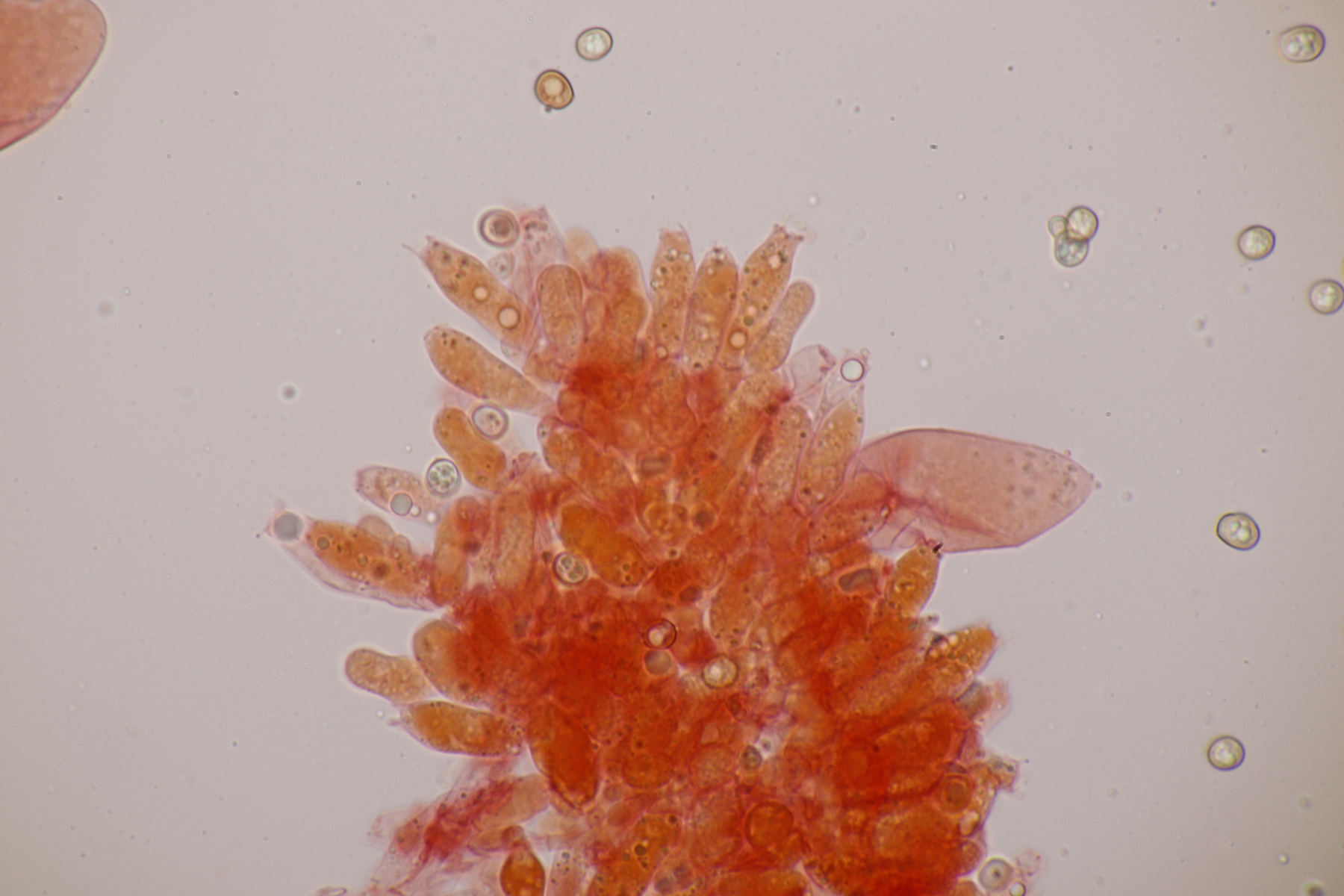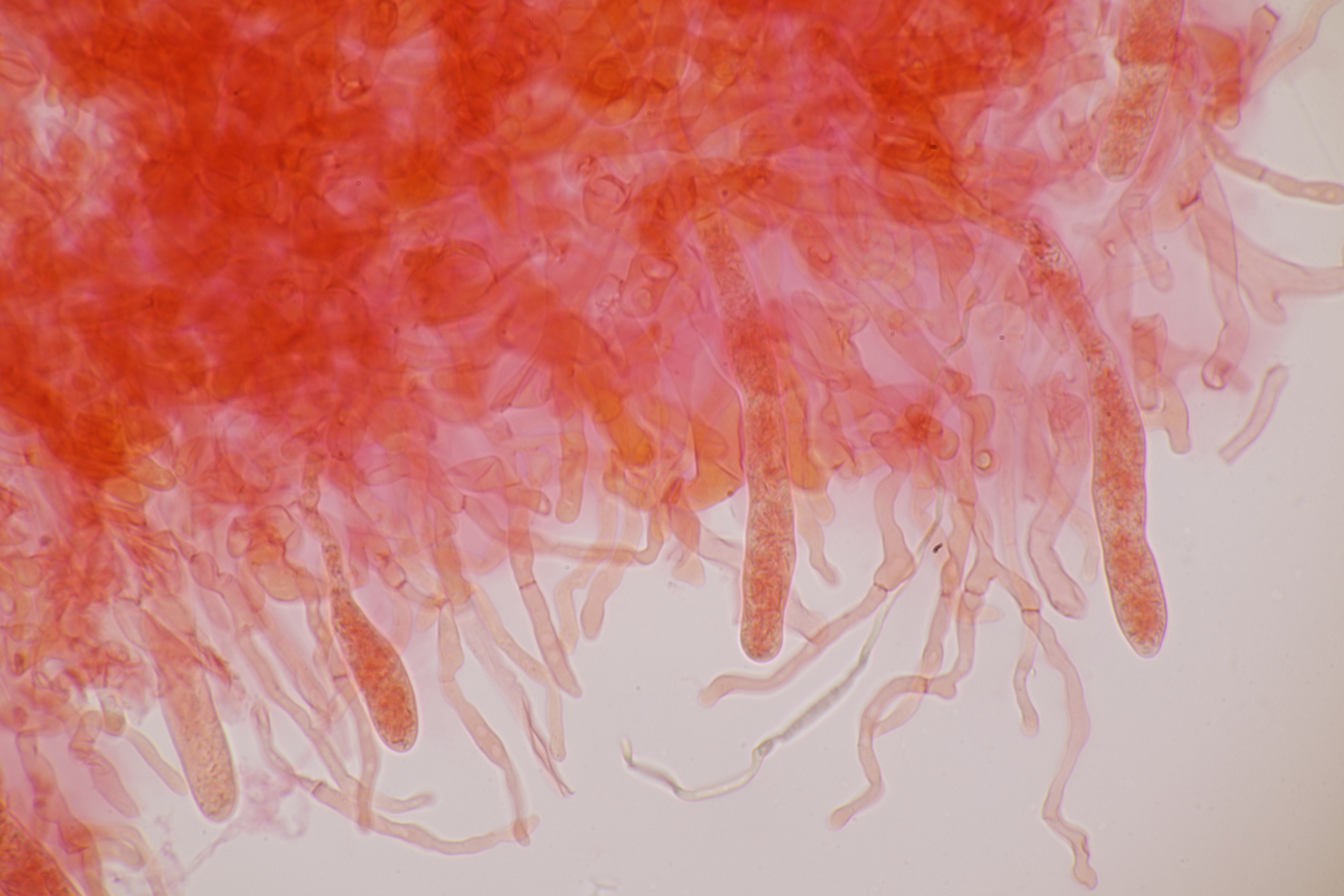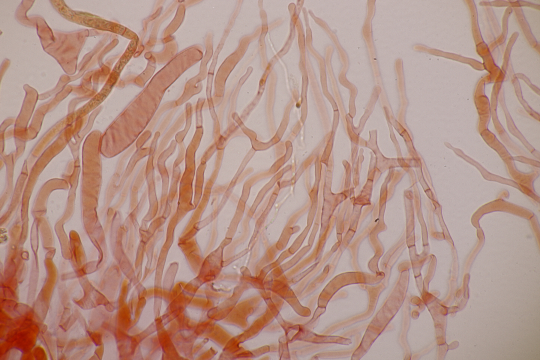 Die Hutfarben sind total untypisch und die Lamellen viel zu hell - erinnert mich eher an R. viscida. Mikroskopisch sehe ich deutliche Pileozystiden und zumindest teilnetzige Sporen mit niedrigem Ornament - passt auch nicht wirklich zu R. olivacea.