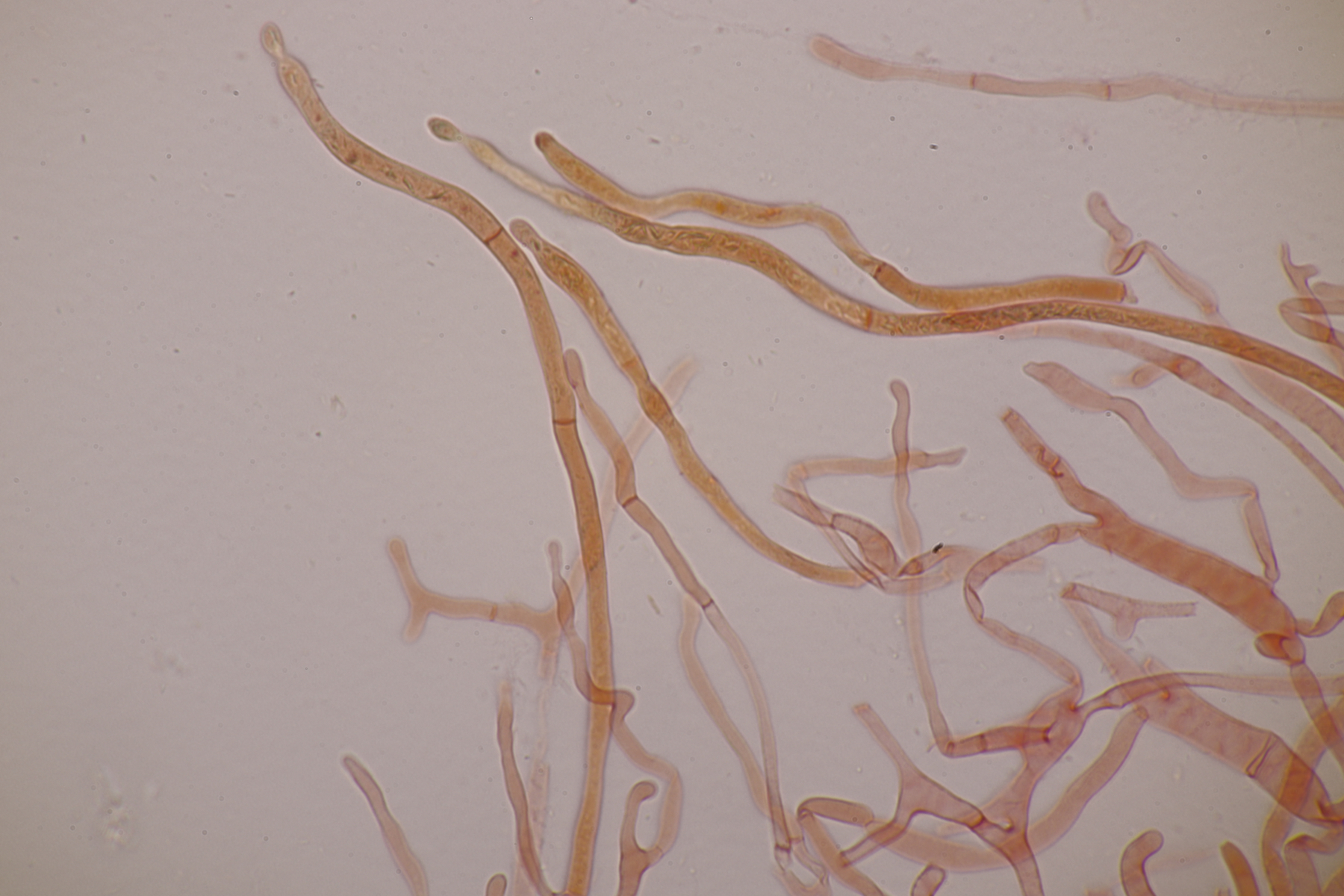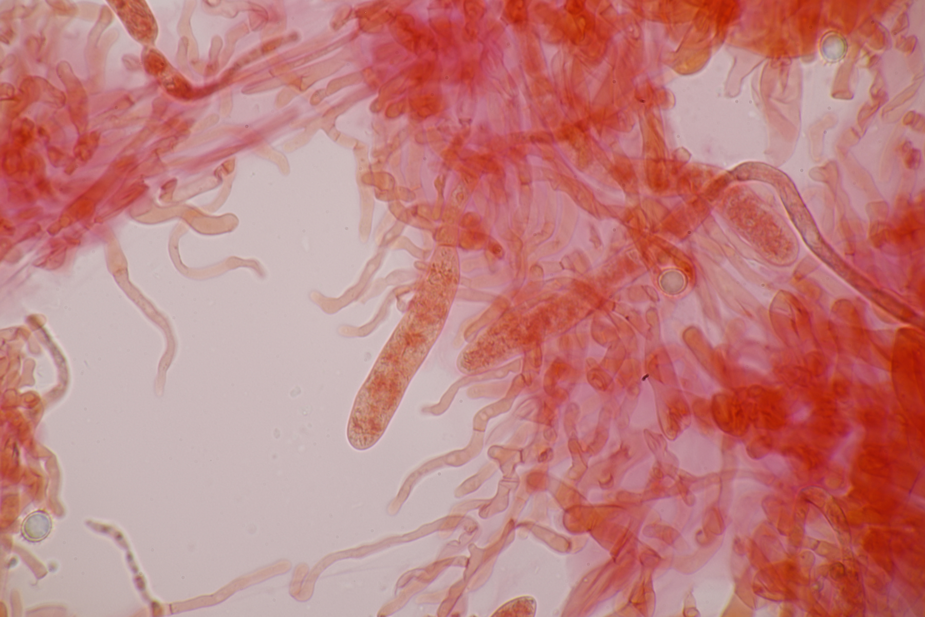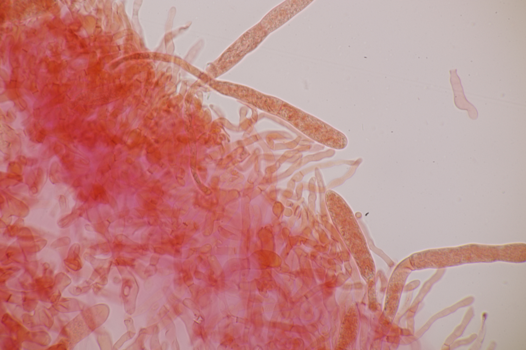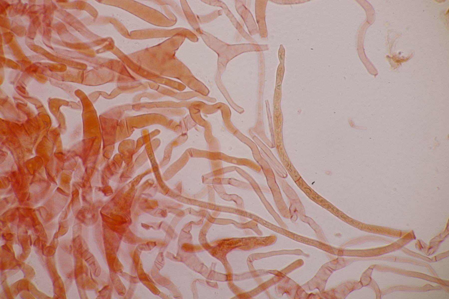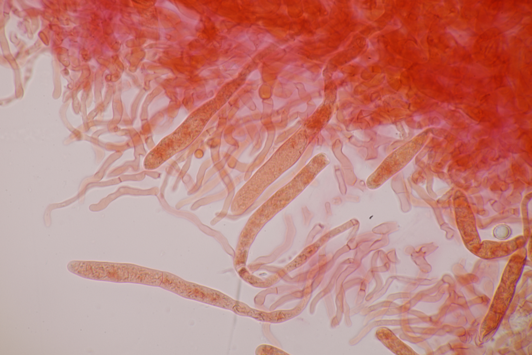 Die Hutfarben sind total untypisch und die Lamellen viel zu hell - erinnert mich eher an R. viscida. Mikroskopisch sehe ich deutliche Pileozystiden und zumindest teilnetzige Sporen mit niedrigem Ornament - passt auch nicht wirklich zu R. olivacea.