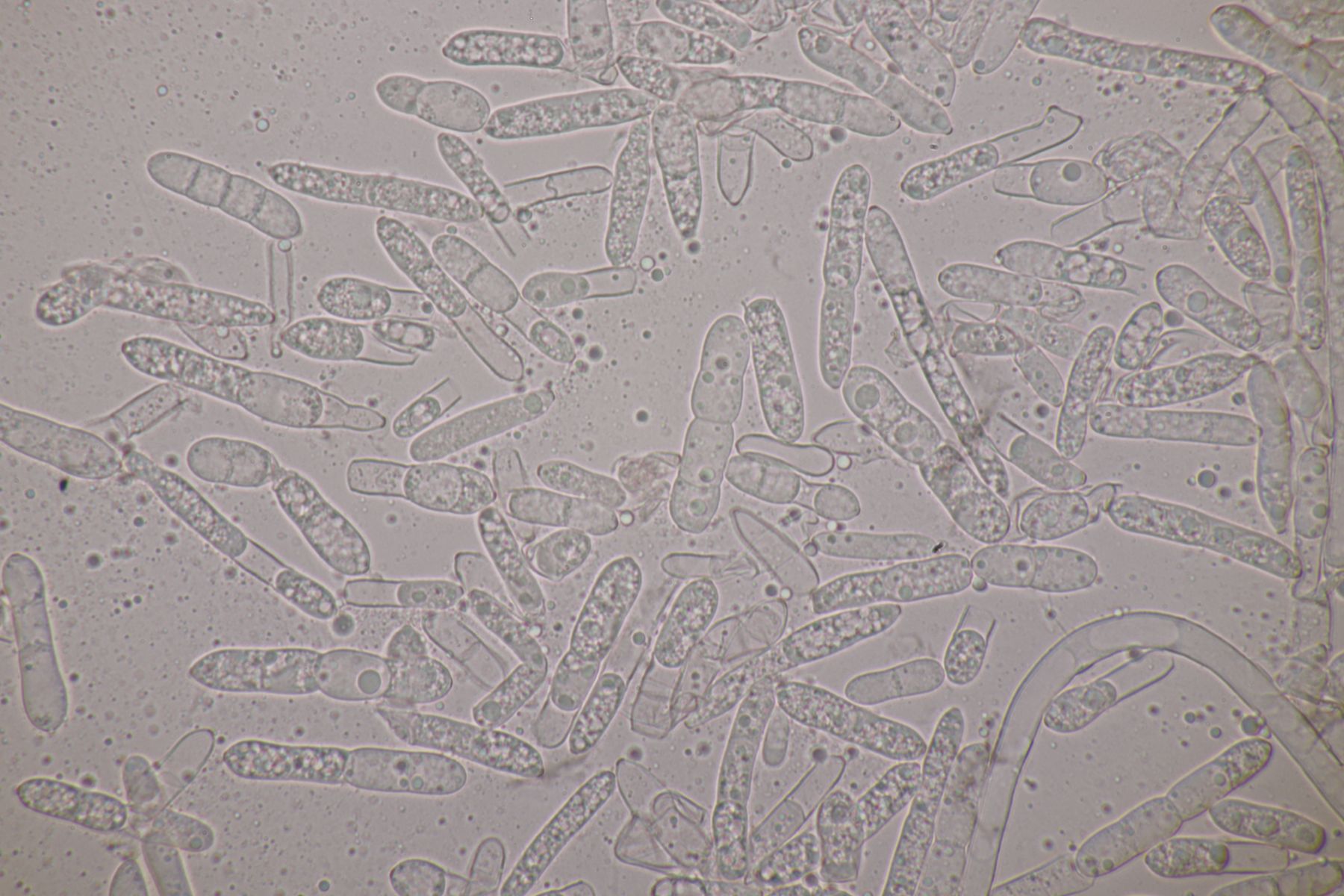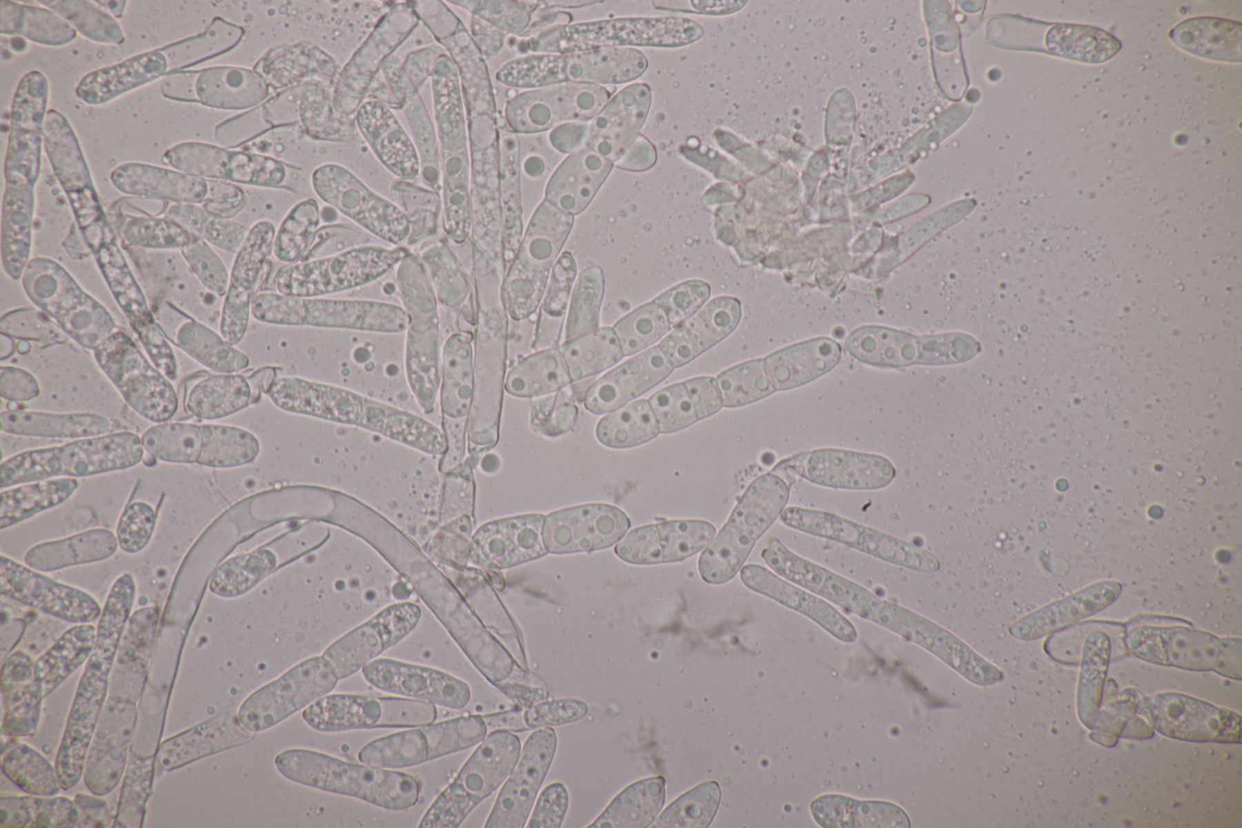3. Eine Ramularia auf Valeriana officinalis agg. Leider gibt es 2 Arten: Phaeoramularia valerianae und Ramularia valerianae. Erstere ist gräulich, letztere weißlich, also klarer Punkt für die Ramularia. Die Konidienform paßt dann aber wieder besser zur Phaeoramularia...
