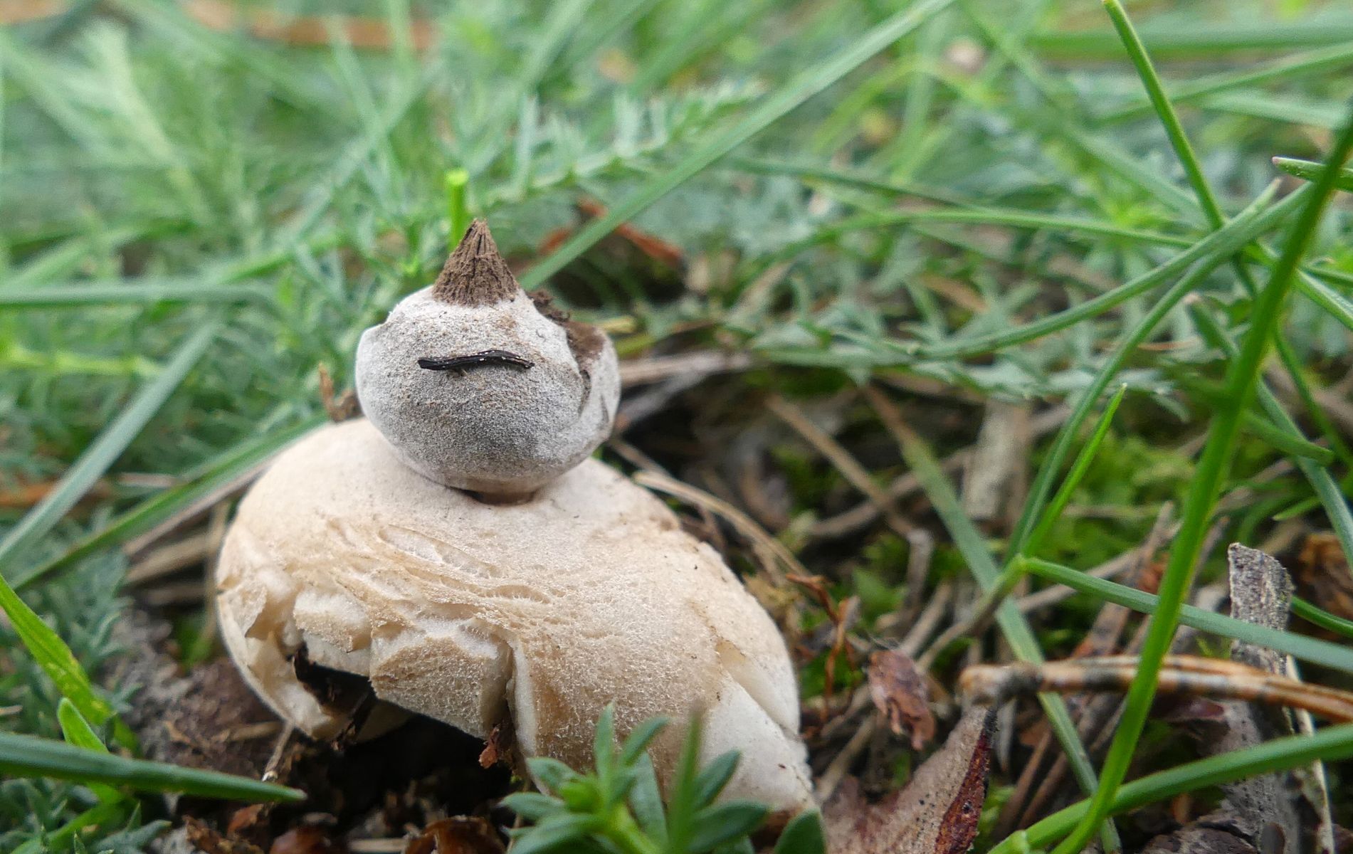 Während ich die ganzen Nabel-Erdsterne fotografierte war da dazwischen drin (und zwischen den Hinterlassenschaften der Schafe) auf einmal ein anderer. So, und jetzt wird es kompliziert dachte ich da nur ^^