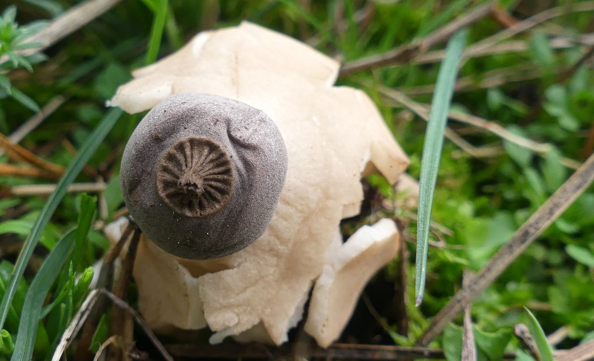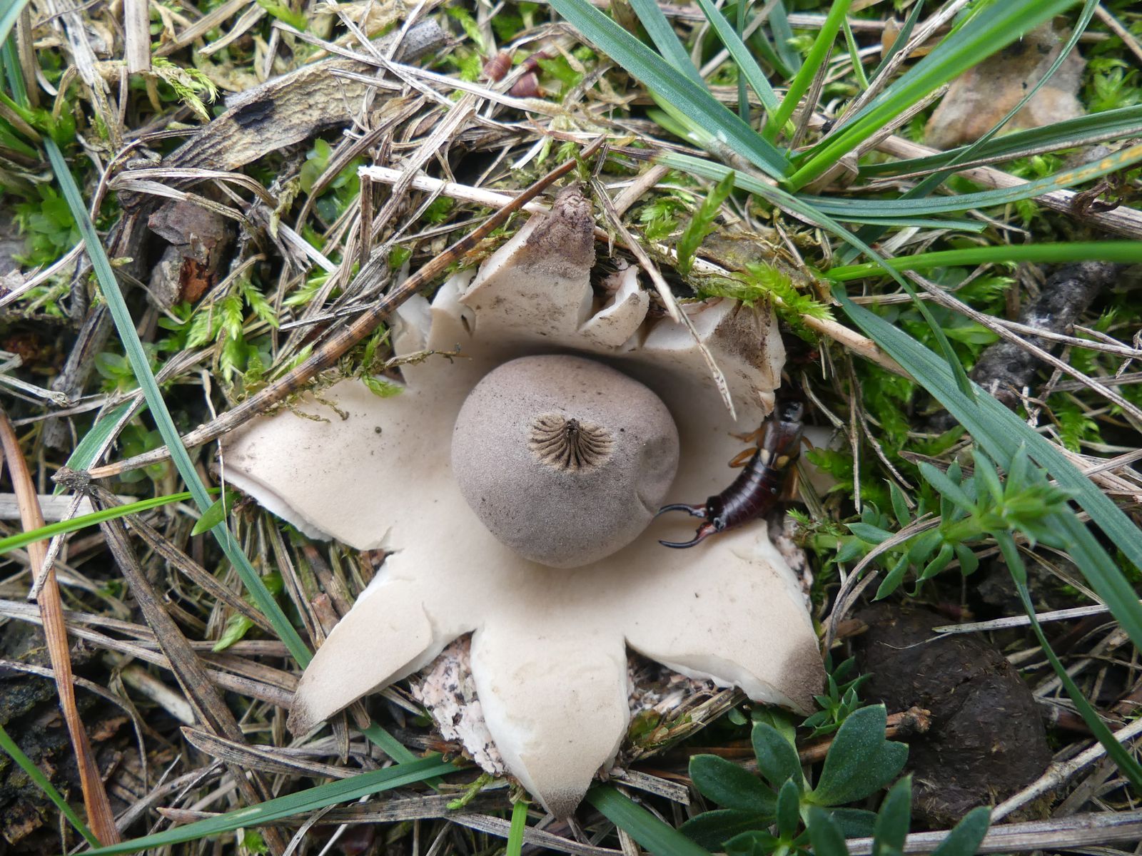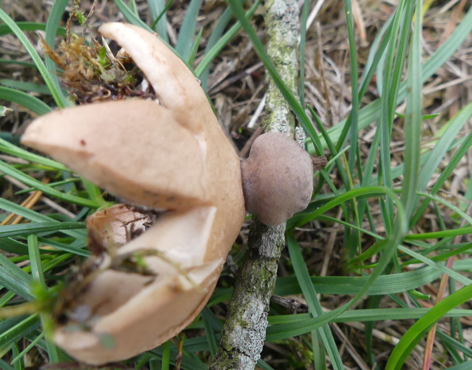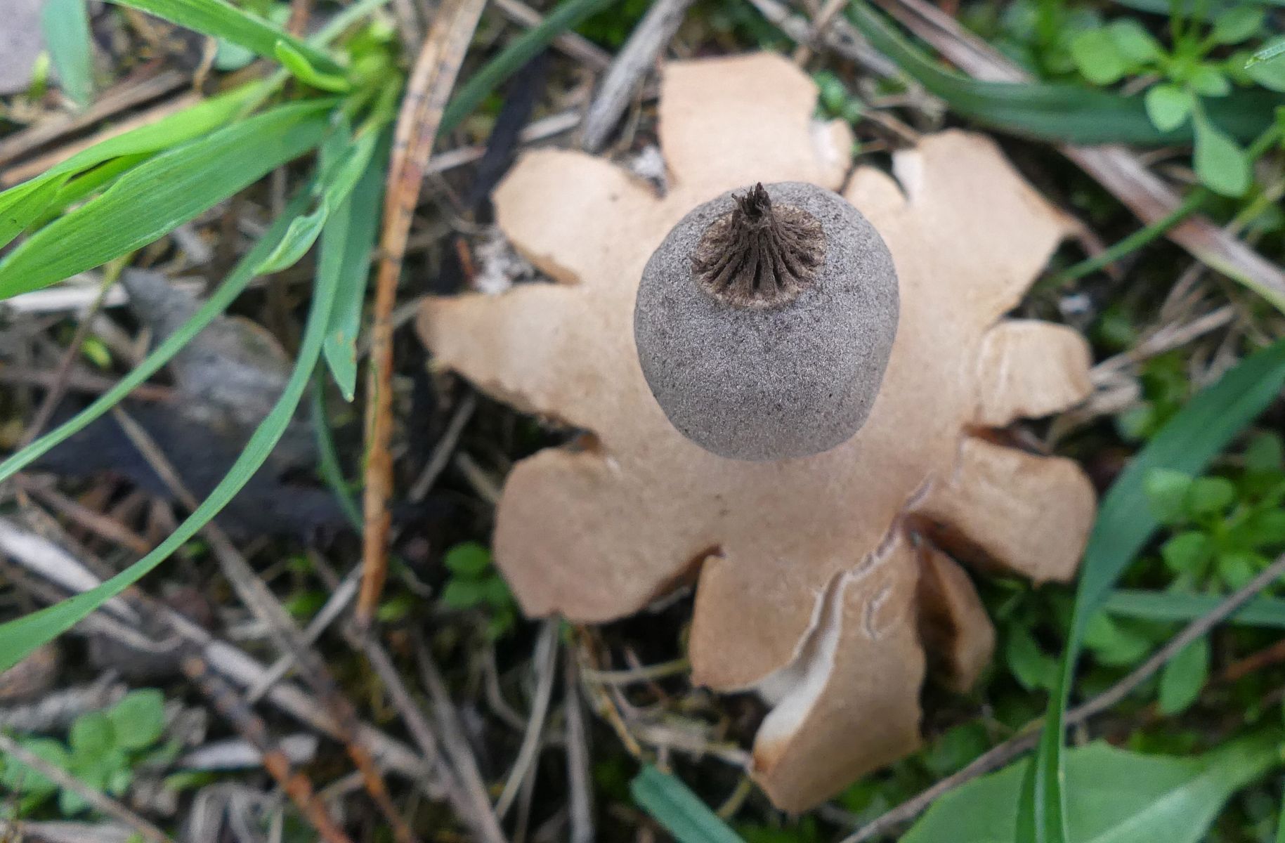 nachdem ich von den zweiten Erdsternen einen Fruchtkörper mitgenommen hatte, konnte ich die, nachdem dieser getrocknet war, meiner Meinung nach relativ sicher bestimmen - Geastrum nanum.
