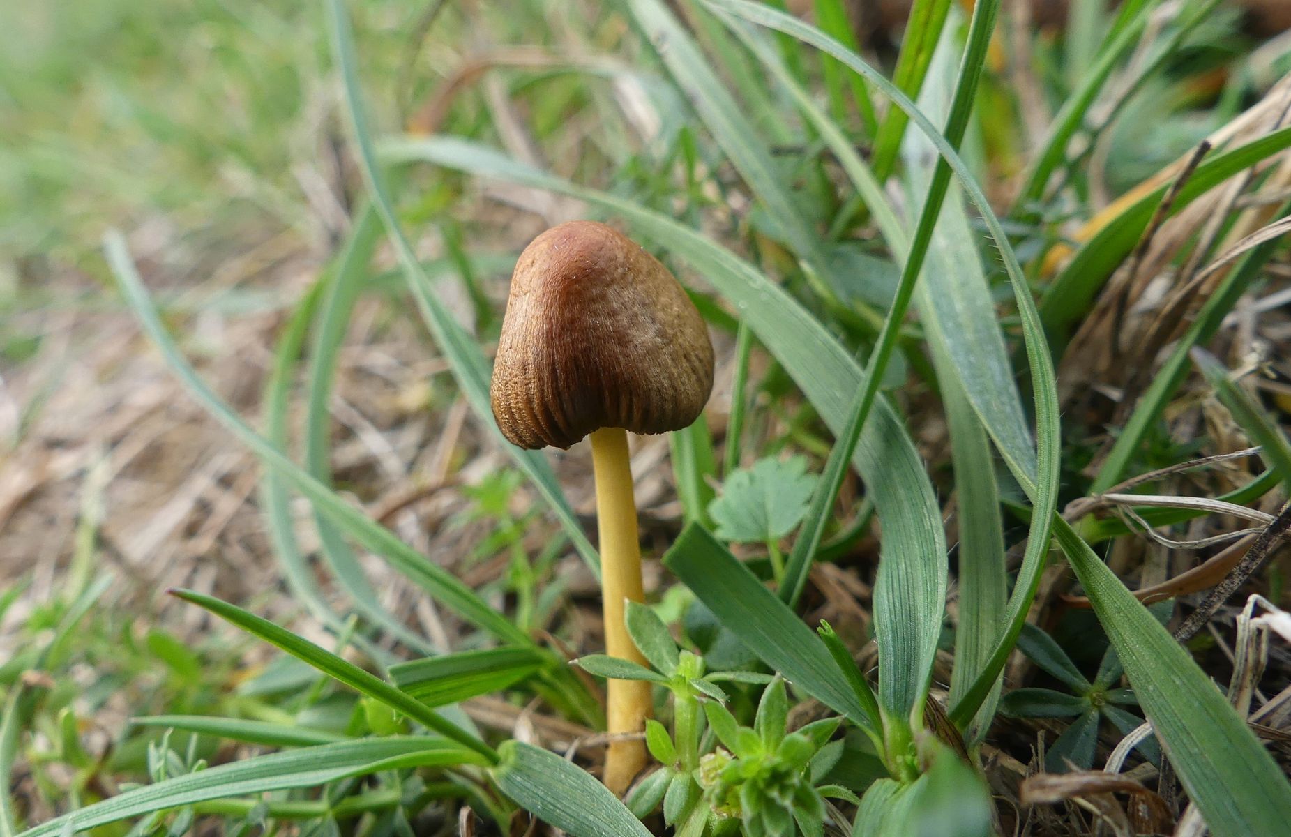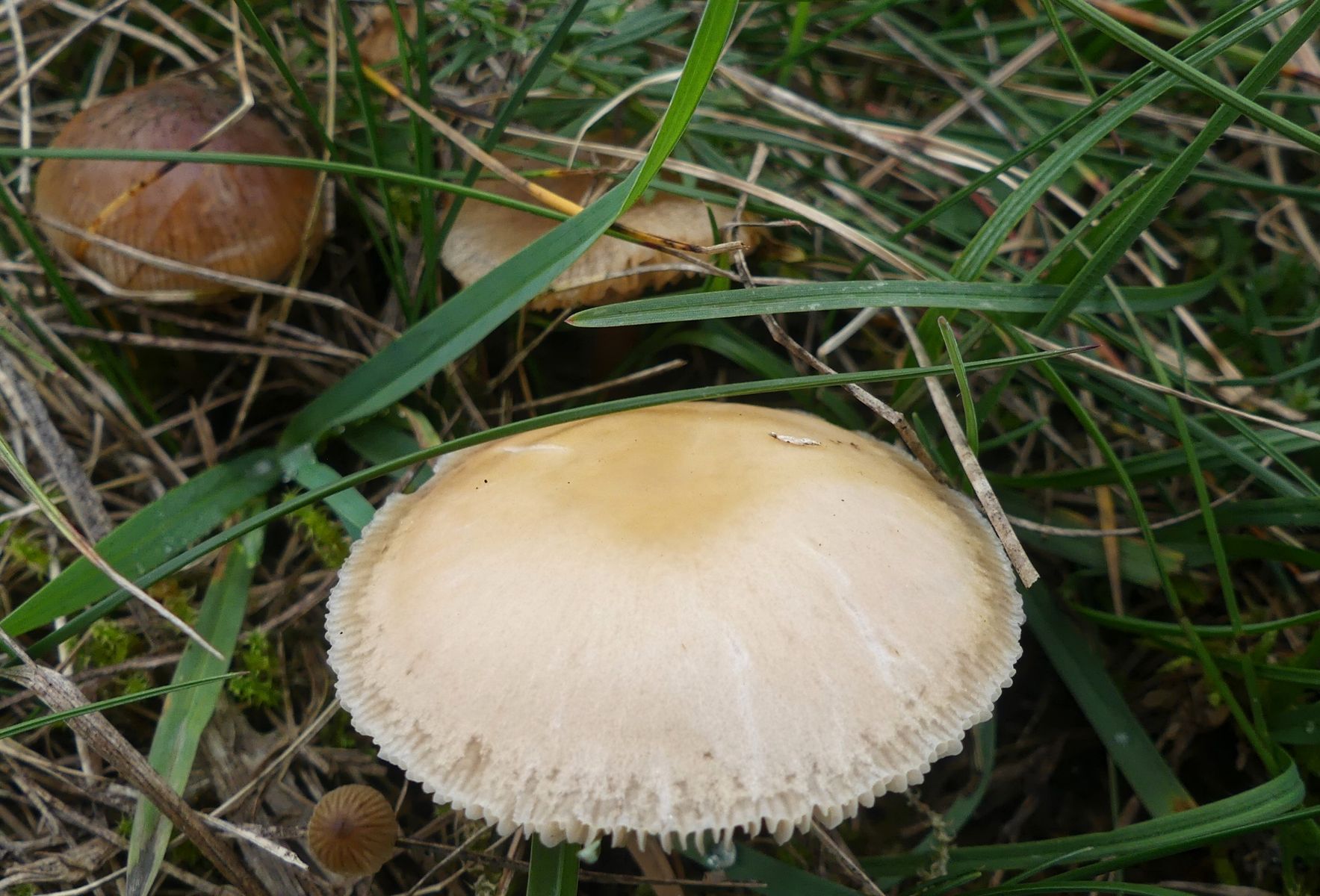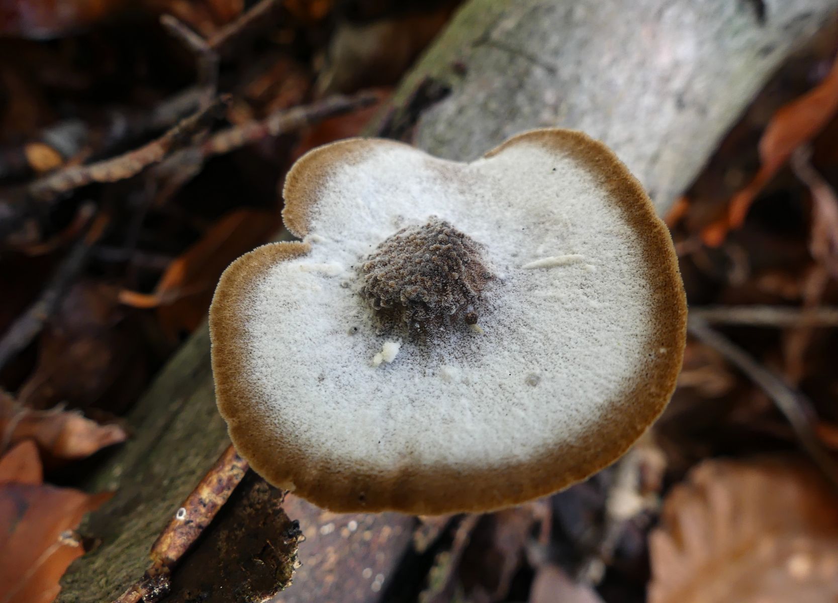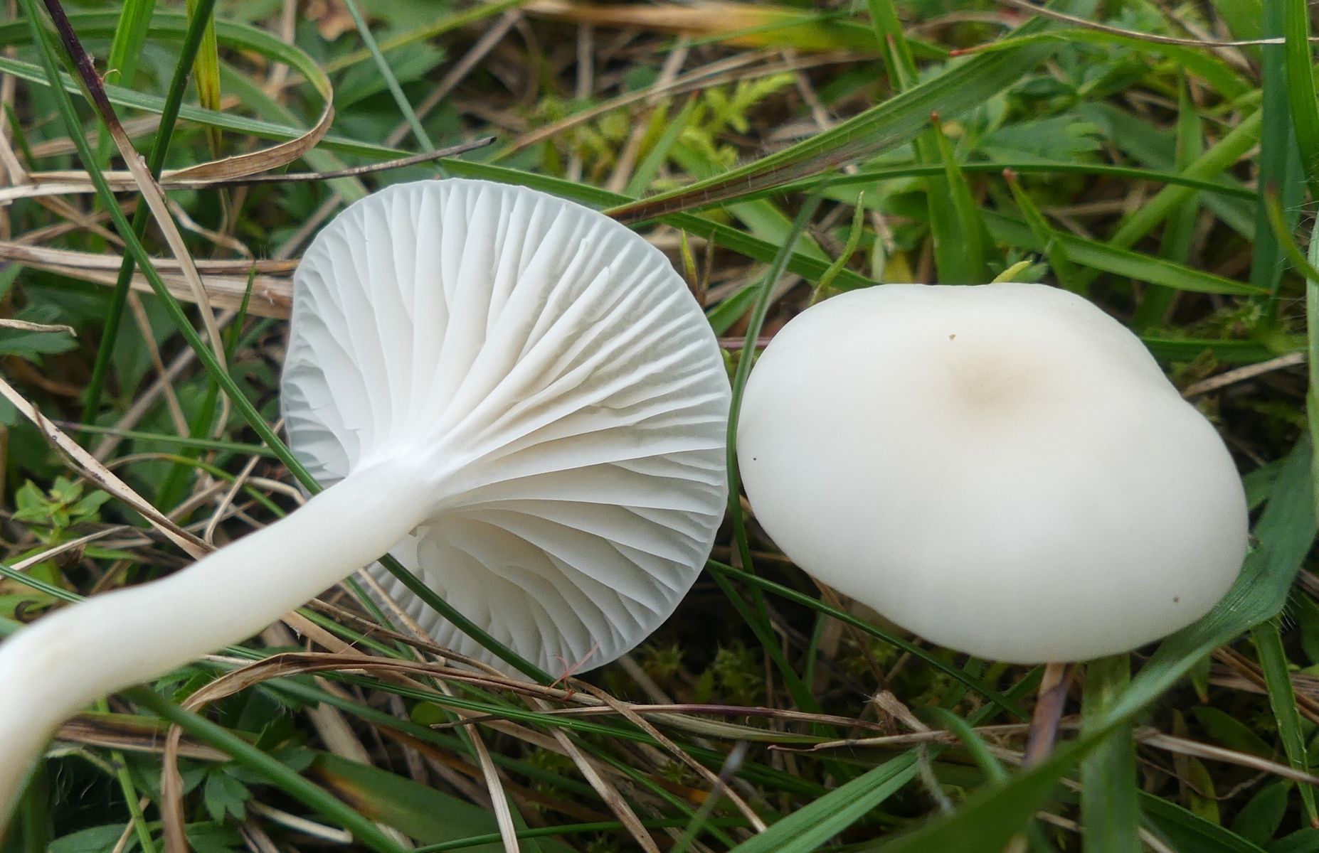 Es gab unendlich viele winzig kleiner Pilzchen und nachdem ich nicht fand was ich suchte sah ich mir eben die an. Ein paar der größeren der kleinen Pilzchen etwas genauer und mit denen "verlustierte" ich mich gestern Abend. Ich habe trotzdem nicht den Schimmer einer Ahnung - von diesem Hübschen mit seinen hellgrauen Lamellen hier zum Beispiel