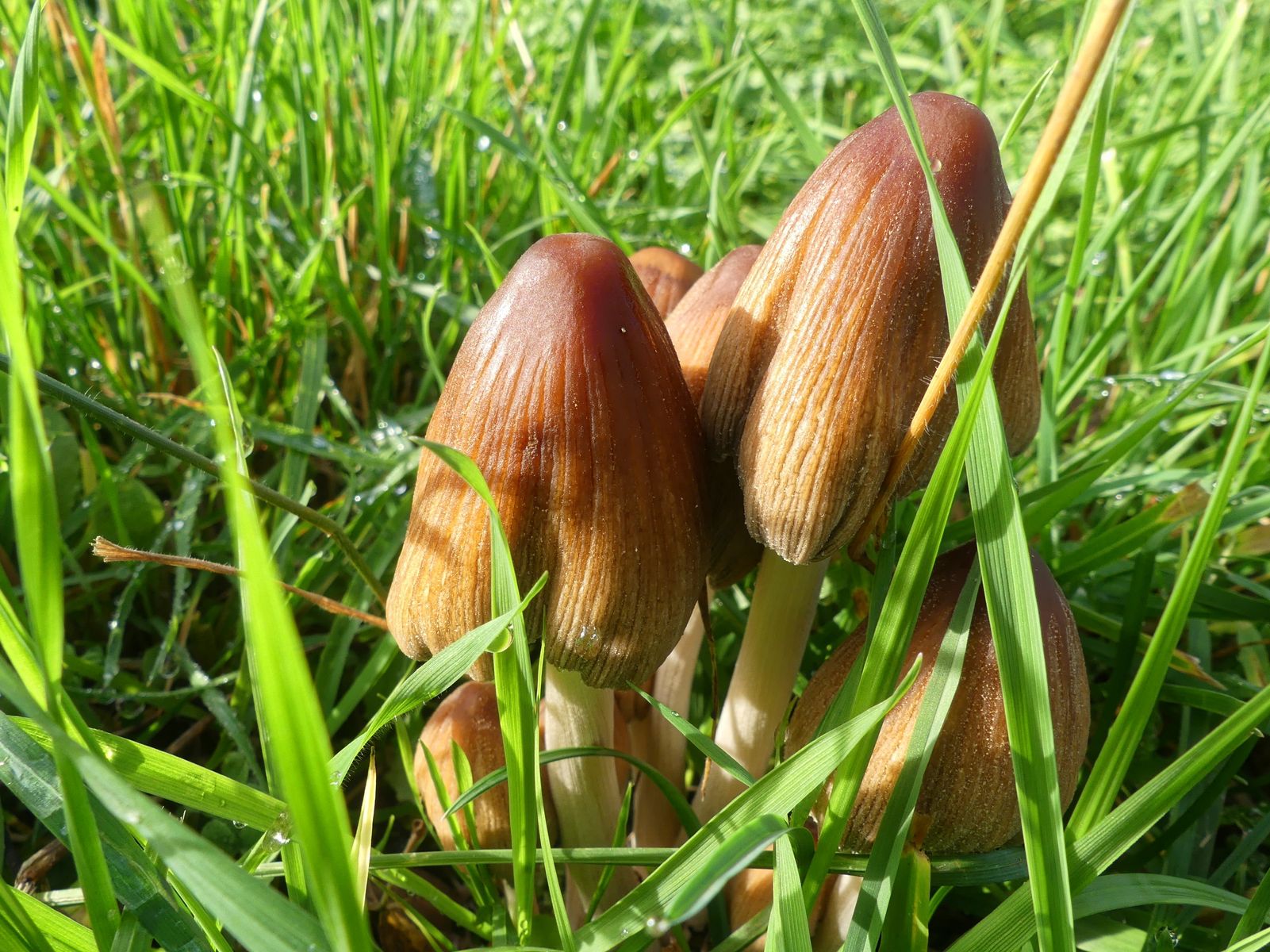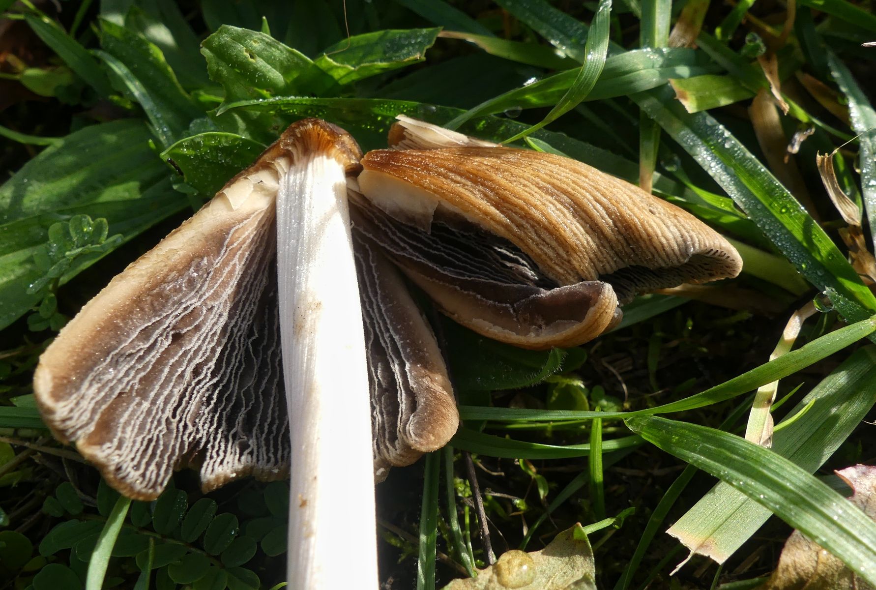 Auf halber Höhe des Berges gibt es einen Wiesenstreifen und dort wuchsen dann zwar auf einmal reichlich Pilze, aber nur diese Tintlinge hier.