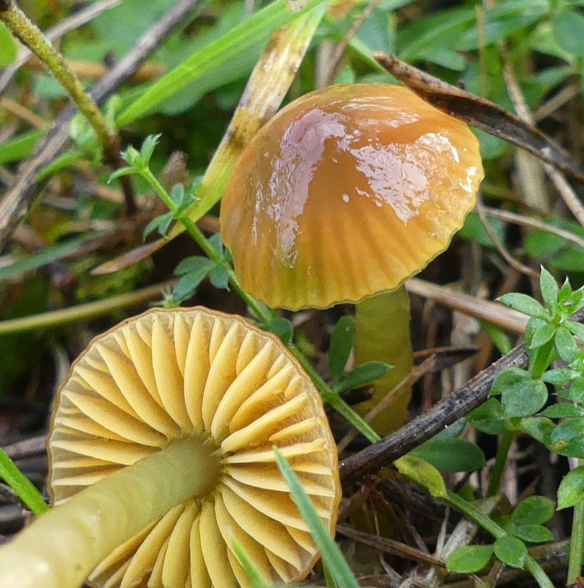 letztes Jahr hatte ich eine Wiese entdeckt auf der Anfang November massenhaft unter anderem 4 verschiedene Ellerlinge (Jungfern-, Juchten-, Ockerblaser-, Orange-Ellerling) und diverse Saftlinge, darunter massenhaft Papageien-Saftlinge, wuchsen. Dies war vor einem Jahr unglaublich. Jedenfalls ist ja klar, dass ich diese Wiese nun wieder besuchte. Tja, die ersten zwei Mal wuchsen da weder Ellerlinge noch Saftlinge, gestern versuchte ich es noch einmal - so gut wie nichts! Dennoch, es war ein schöner Spaziergang und ich bin dennoch mit sehr schönen Pilzen fündig geworden über die ich mich sehr gefreut habe, vor allem über die am Ende des Beitrages.