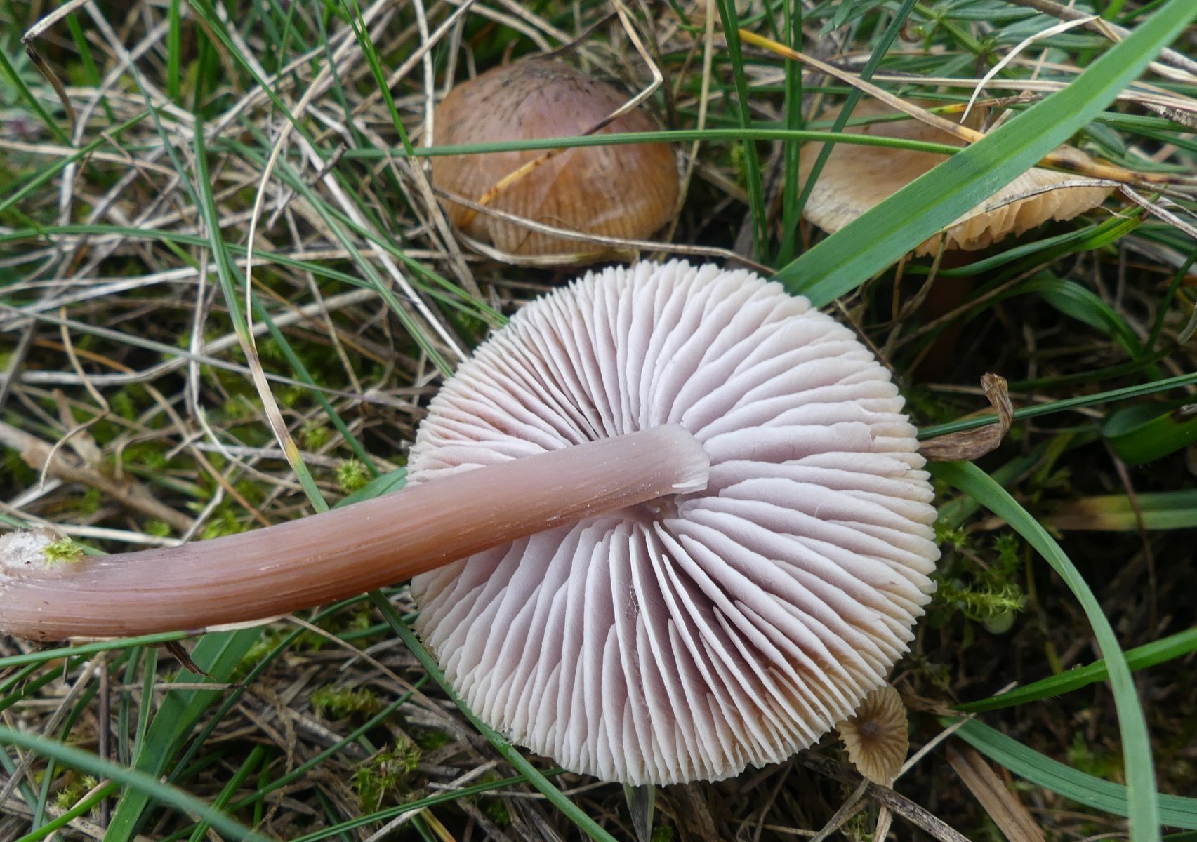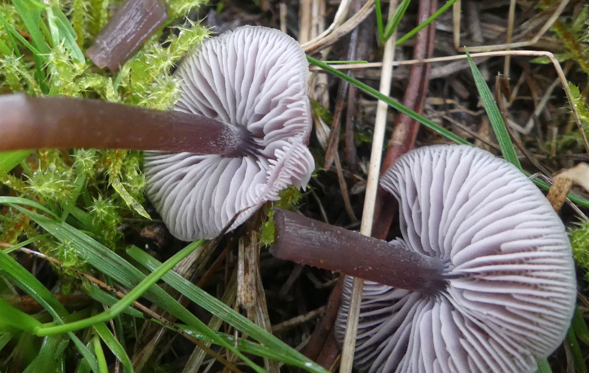 Oder der hier mit seinen rosa überhauchten Lamellen und seinem rosa-violettem Stiel