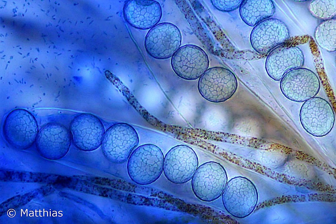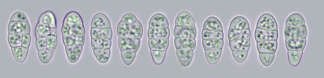 Wie zB Sporormiella octonalis mit achtzelligen Sporen. Du zeigst sie an Schafdung vom Bornberg.