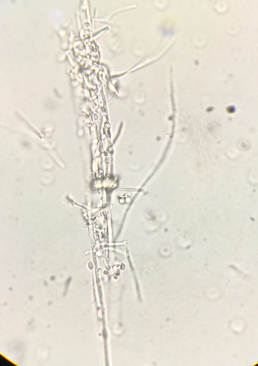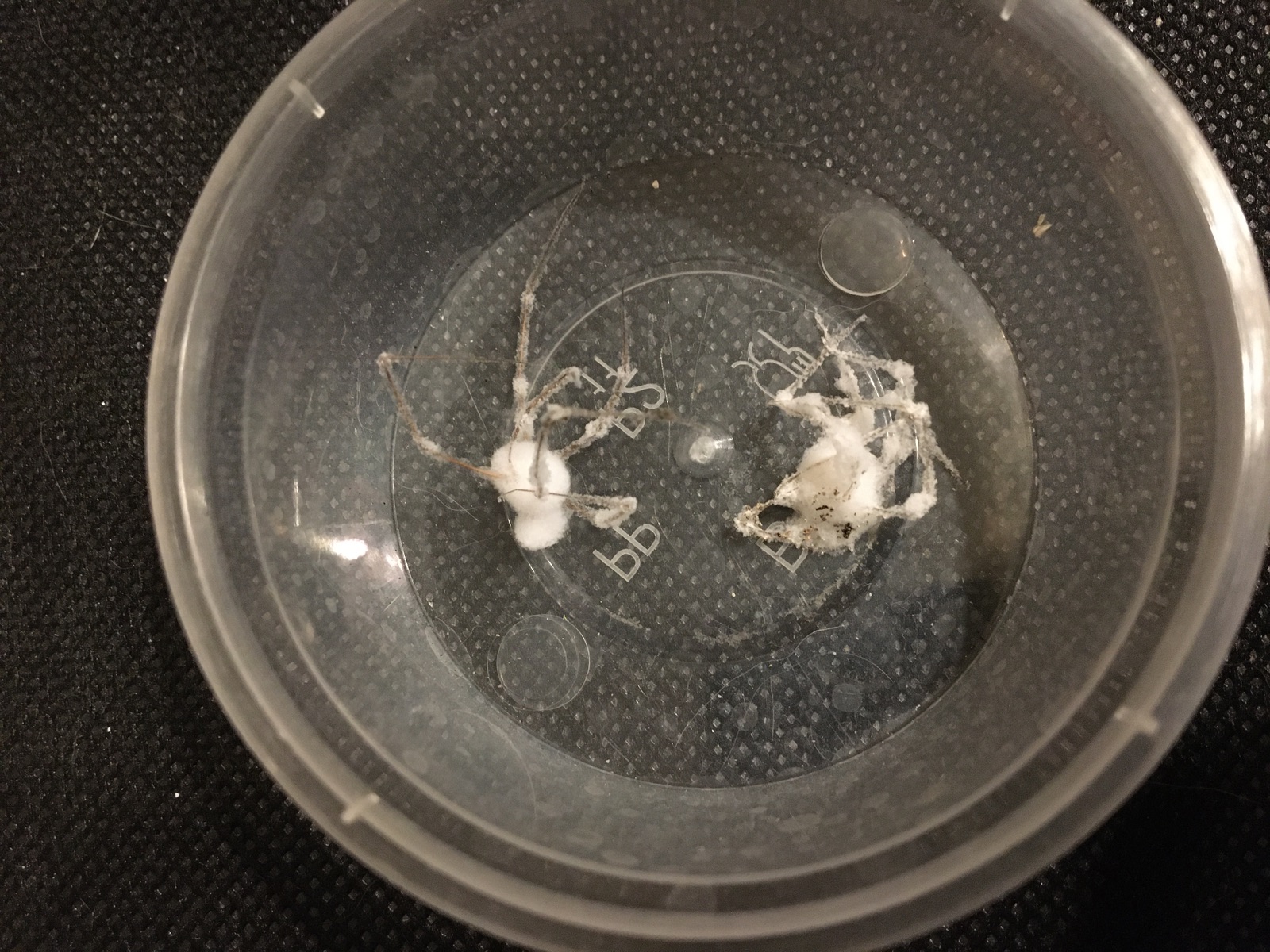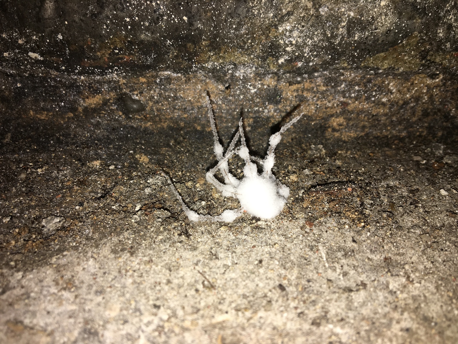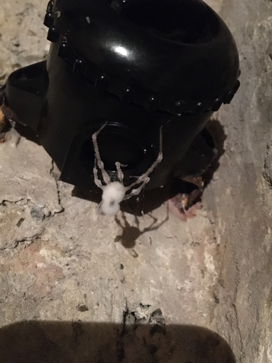 Am Lichtschalter hing dann noch eine zweite, die weniger verpilzt war, aber sich nicht mehr bewegt hat. Kennt jemand von euch diesen Pilz? Hab etwas geforscht und Fotos von diesem Pilz auf Zitterspinne gefunden, aber leider keinen Namen.