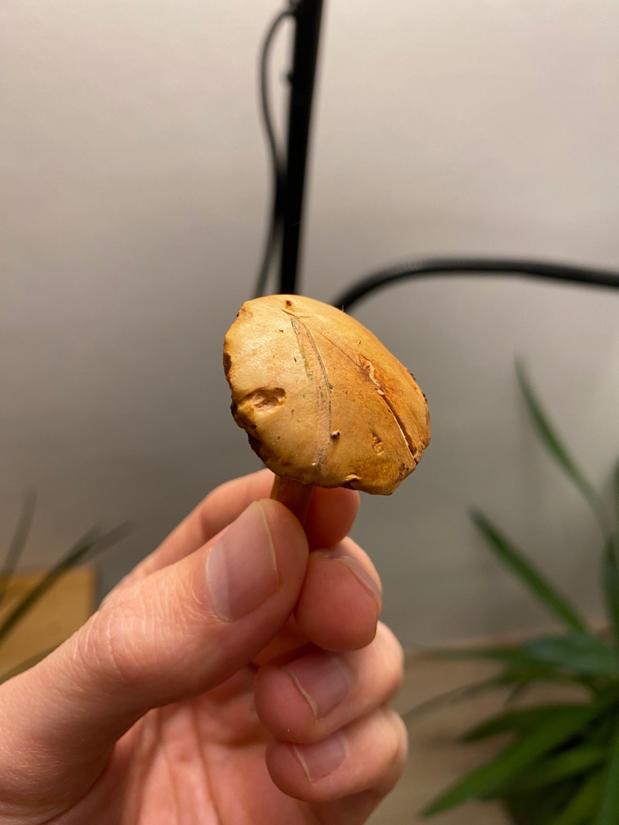 Röhrenfarbe: rot bis kastanienbraun. Kommt nur schwierig rüber auf den Bildern. Fotos sind leider erst abends bei Kunstlicht daheim entstanden. Im Wald hatte ich keine Kamera zur Verfügung.