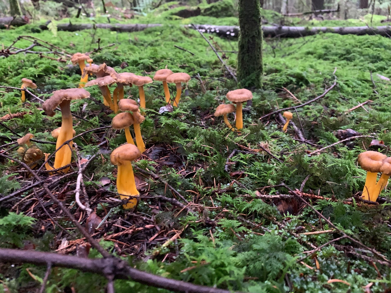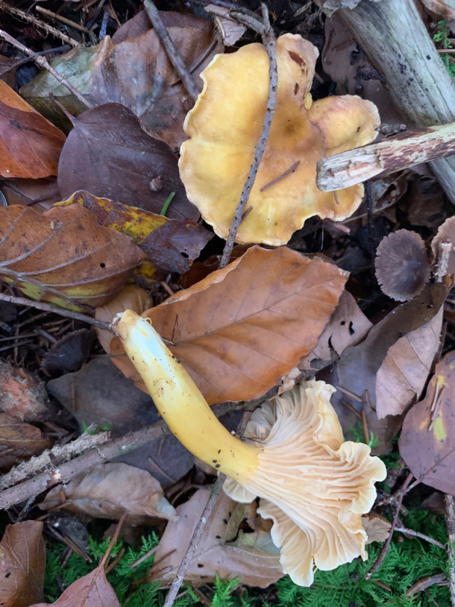 12. Ganz im Gegensatz zu ihrem Nadelwaldgegnstück, dem Trompetenpfifferling (Craterellus tubaeformis). Der steht hier immer noch in verschiedenem Alter als Massenpilz rum, selbst die, die unten schon total weiß sind, riechen übrigens noch angenehm, keine Spur von Ekelgeruch.