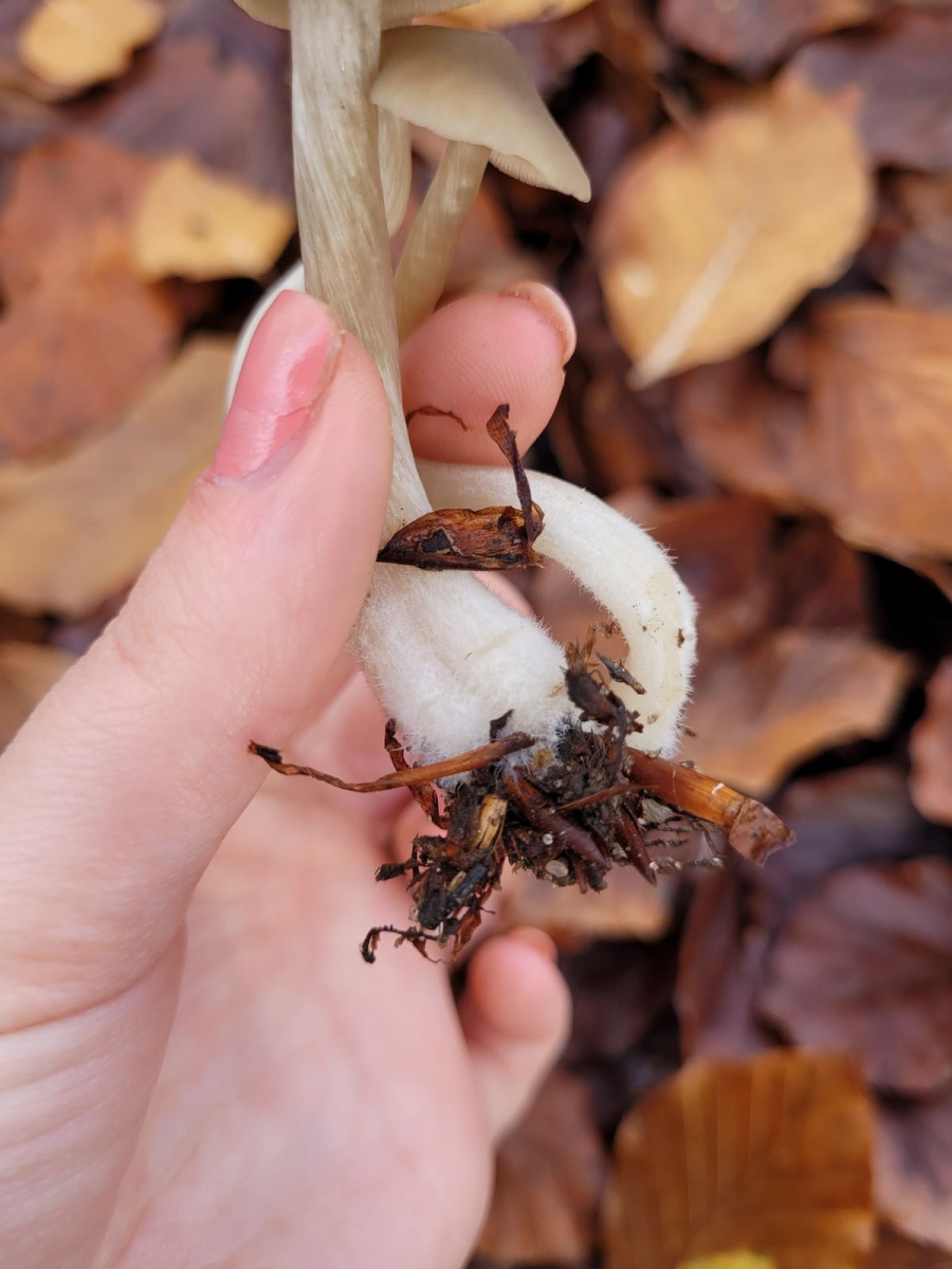 Stiel war sehr elastisch und brüchig, innen hohl, Geruch nicht wahrnehmbar. Standen einzeln aber auch in kleinen Büscheln.