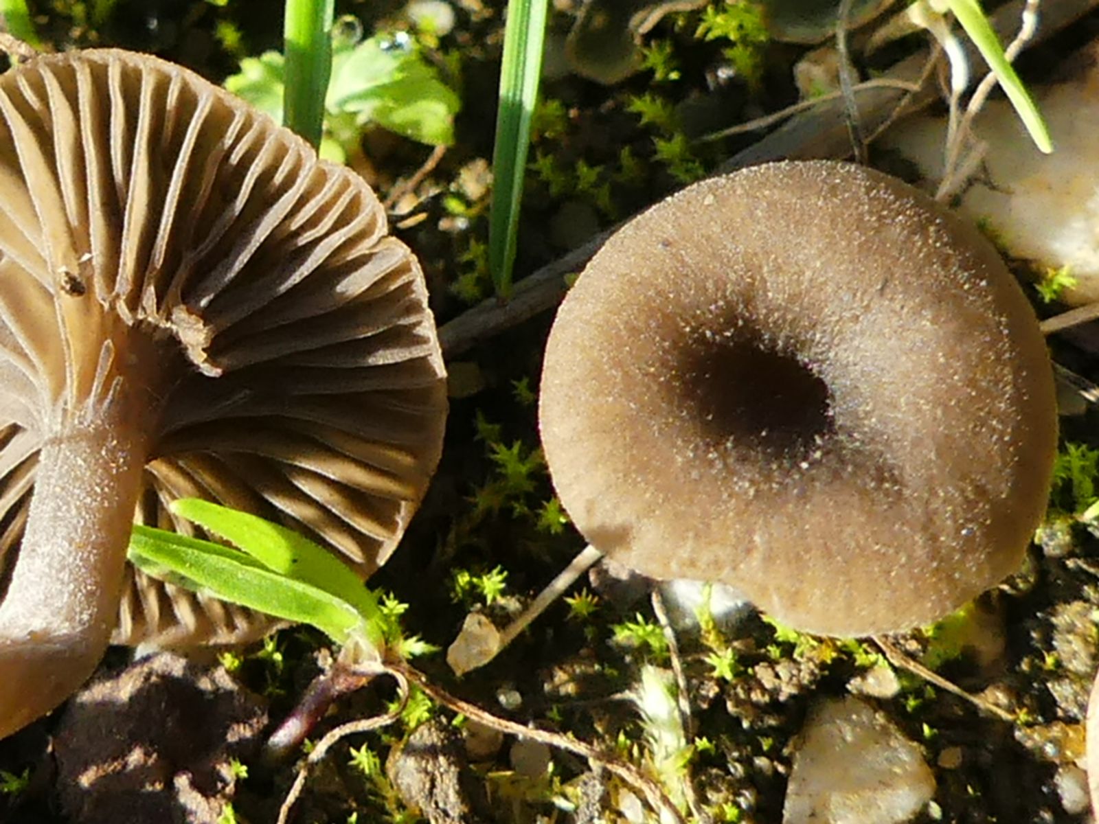 so richtig sagen, was es genau ist, kann ich dir nicht, aber das wird einer der Nabelinge sein im weiteren deutschen Sinne. Wissenschaftlich versteht man da mehrere Gattungen drunter und ich kann noch keine zahlreichen Nabelingsfunde verzeichnen. Deshalb hab ich mich mit denen noch nicht sehr beschäftigt. Aber vielleicht kommst du damit ja schon weiter.