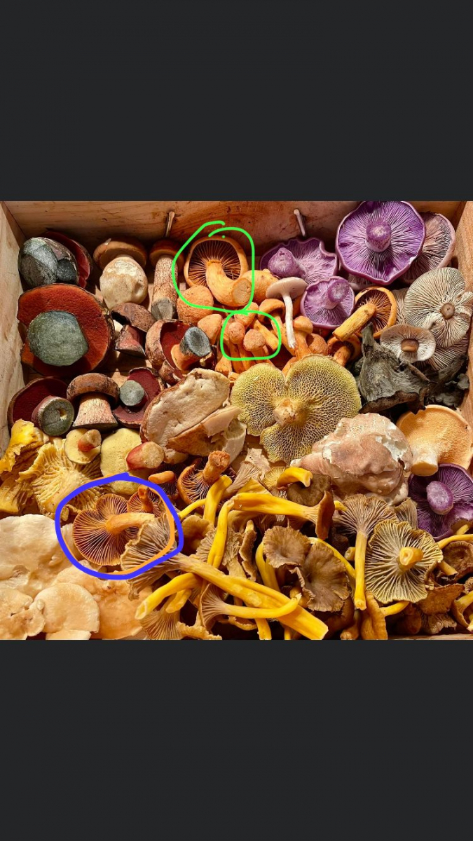 Dieses Fotos von Facebook. Kann mir jemand helfen, die eingekreisten Pilze zu bestimmen?