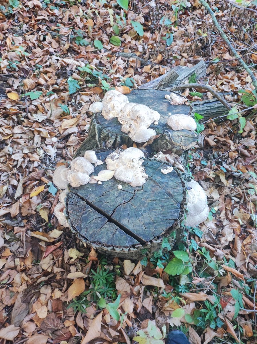 Der Pilz wächst an einem Weidenstamm, war anfangs weiß bis cremefarbig und hat sich bei druck bräunlich verfärbt. Jetzt ist der Pilz komplett braun. Der größte Fruchtkörper ist ca 15 cm breit. Er ist geruchlos.